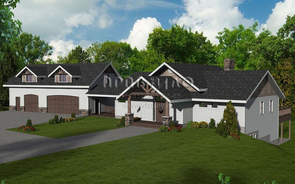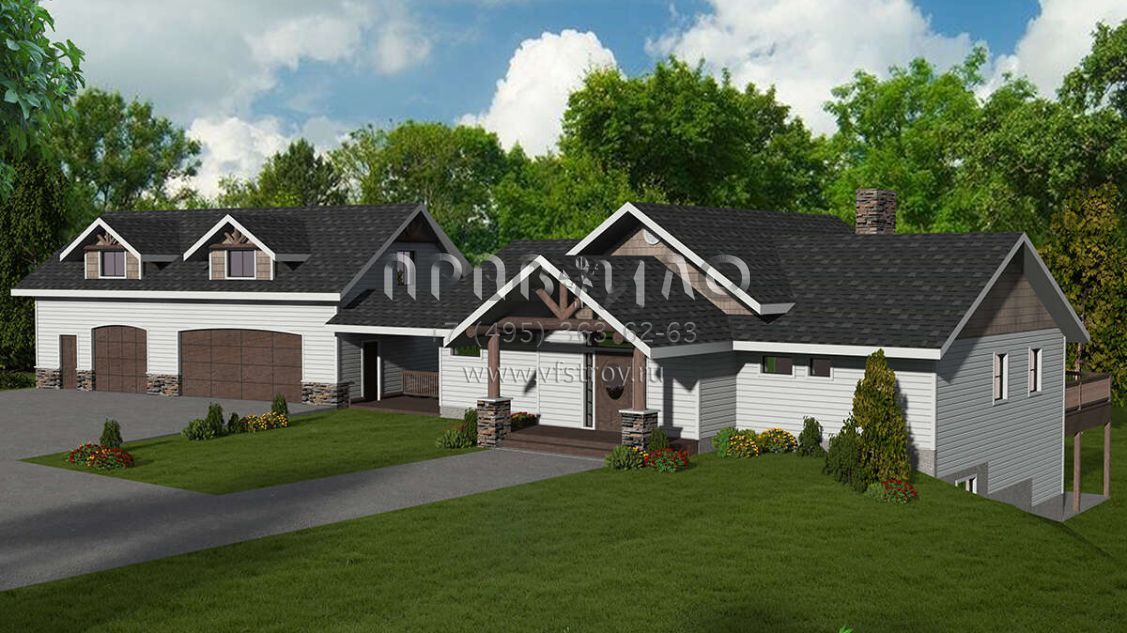 Проект одноэтажного дома с гаражом на две машины в стиле Шале S5-342 (039-00137)
