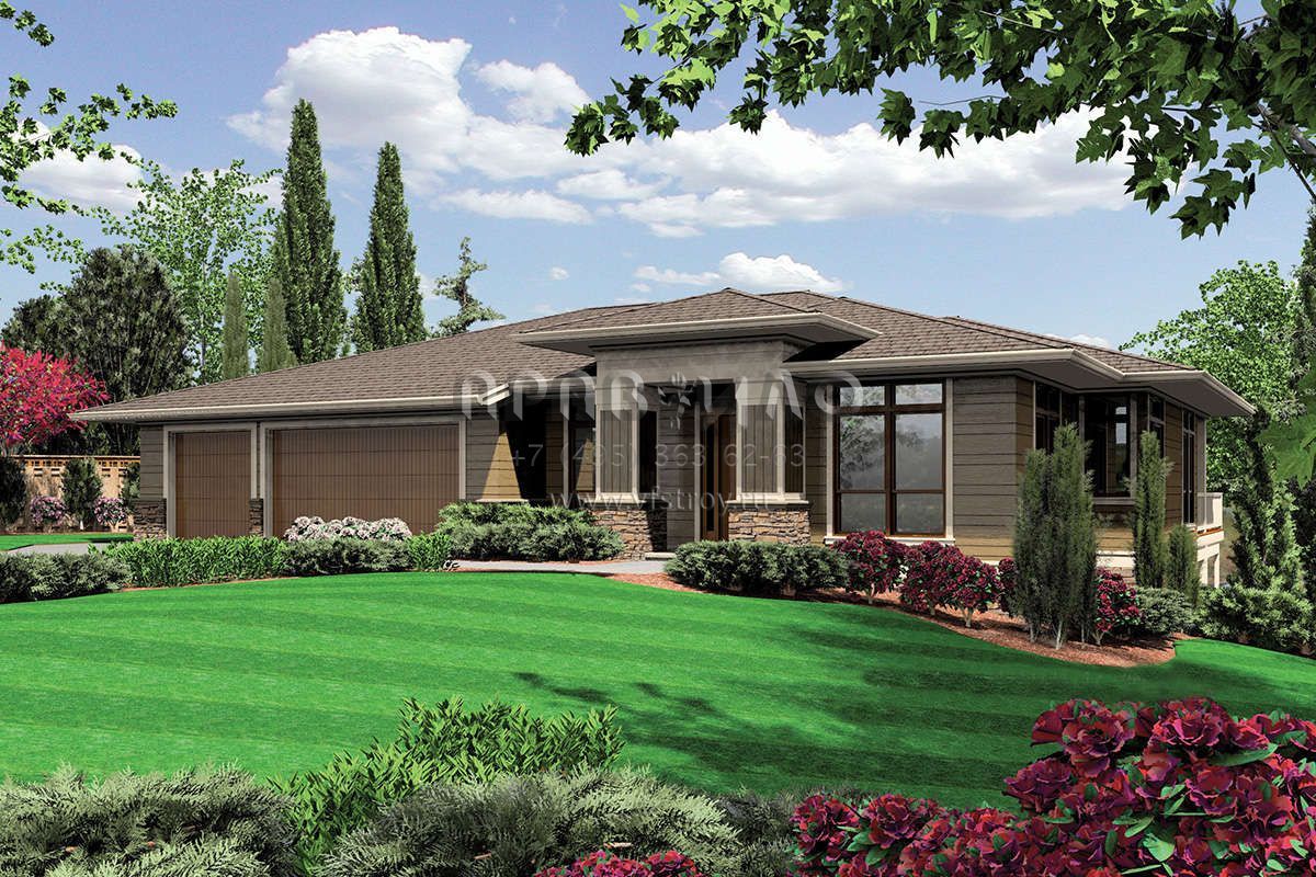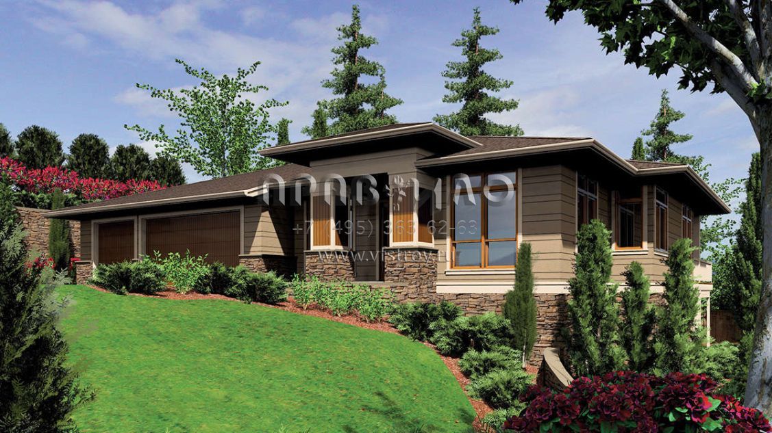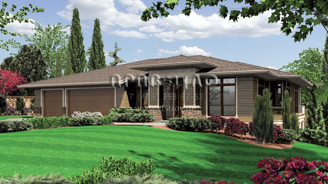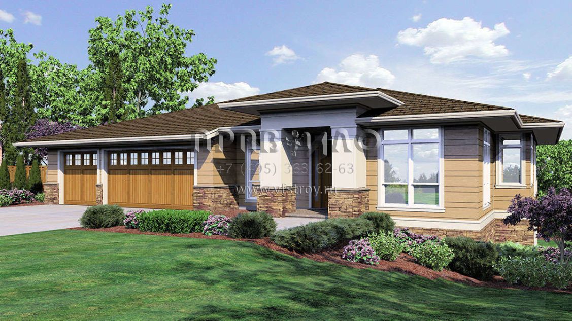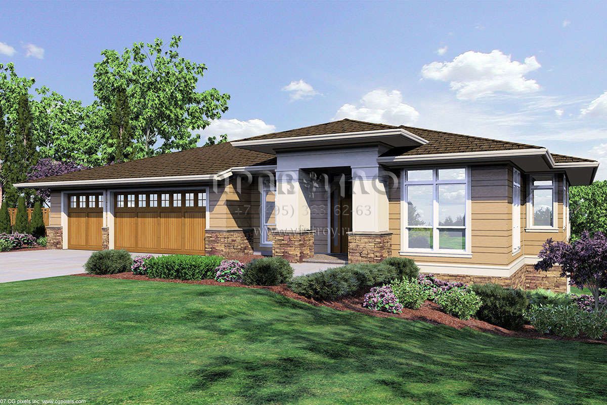 Проект одноэтажного дома с гаражом на три и более машин в стиле Райт S5-342 (2559-00165)