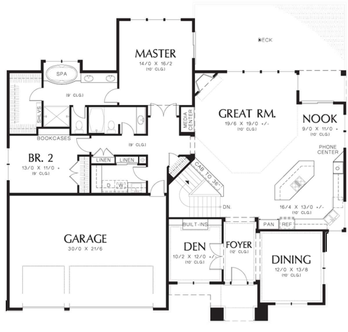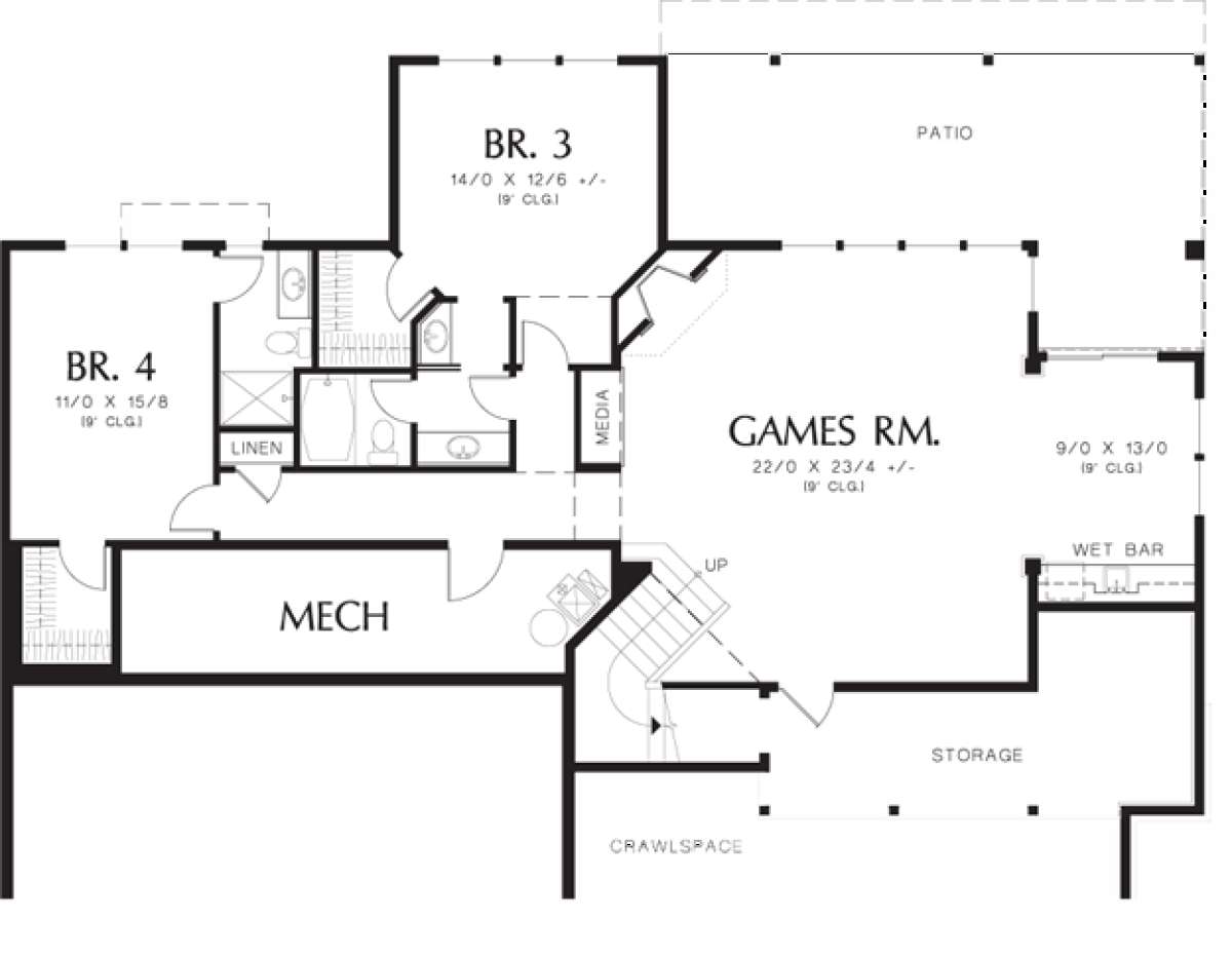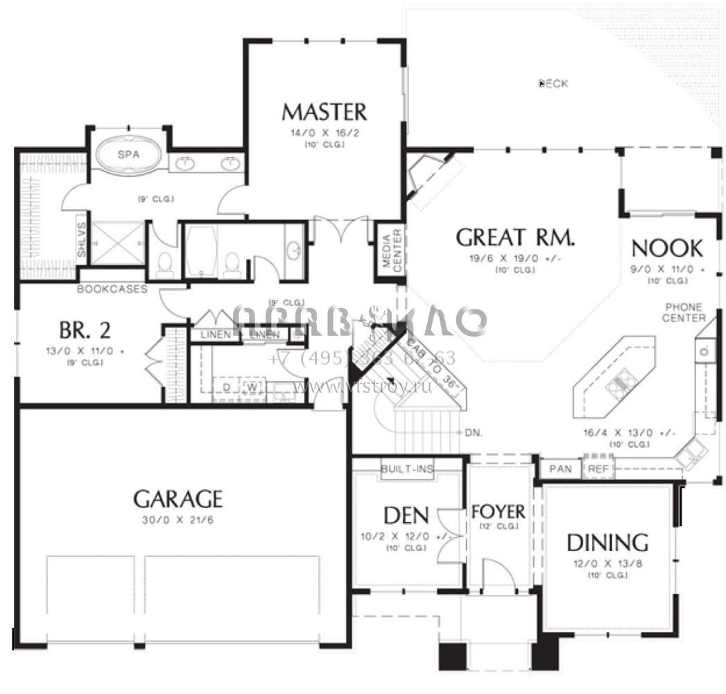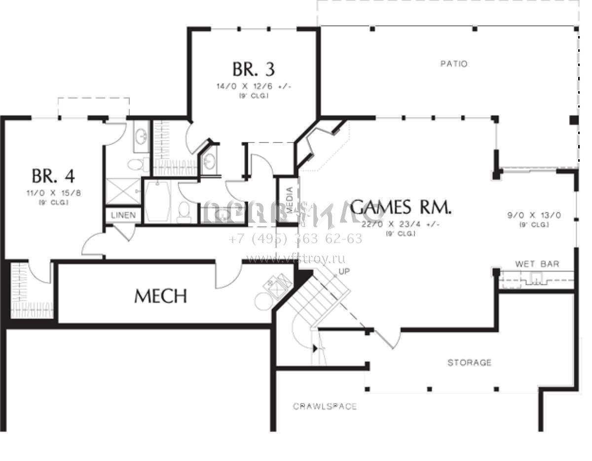 Проект одноэтажного дома с гаражом на три и более машин в стиле Райт S5-342 (2559-00165)
