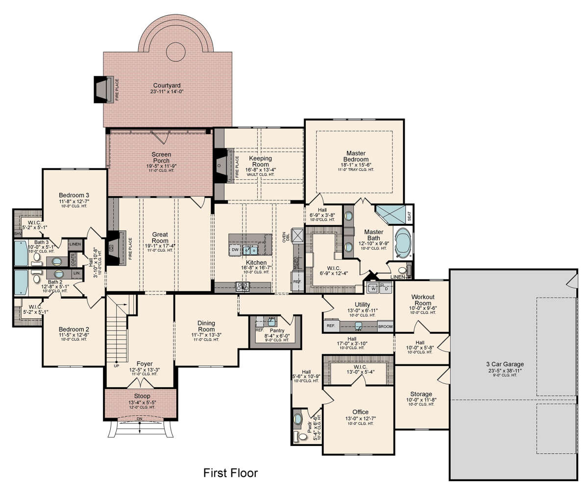 Проект одноэтажного дома с гаражом на три и более машин в стиле Ранчо S5-342 (5995-00018)