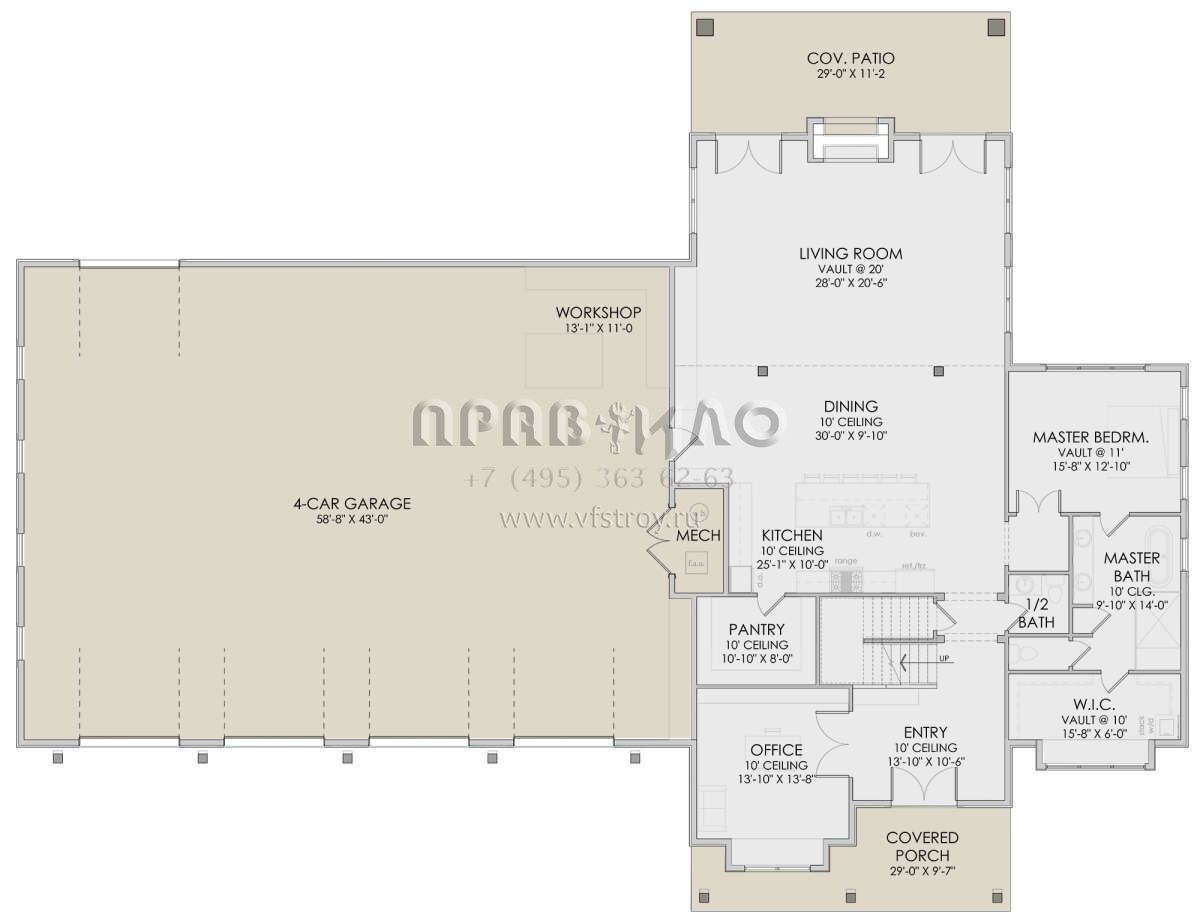 Поскольку этот проект разрабатывался иностранными архитекторами, для строительства дома требуется переработка проекта под действующие в России нормы. Данные визуализации проекта представлены для ознакомления с концепцией проекта. Проект разработан американским архитектурным бюро и представлен America's Best House Plans.
