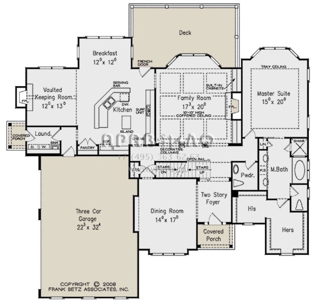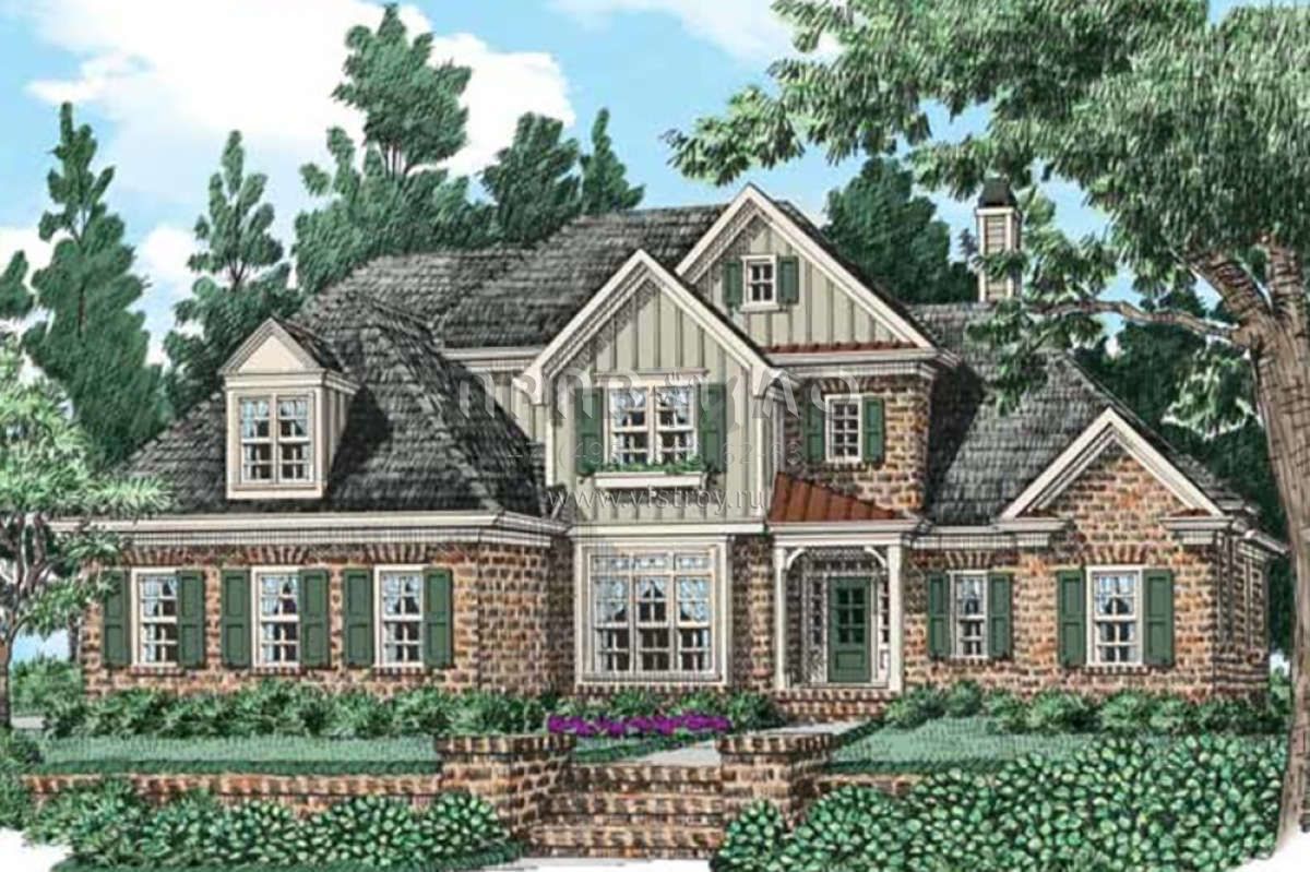 Проект двухэтажного дома с гаражом на три и более машин в стиле Ранчо S5-343 (8594-00215)
