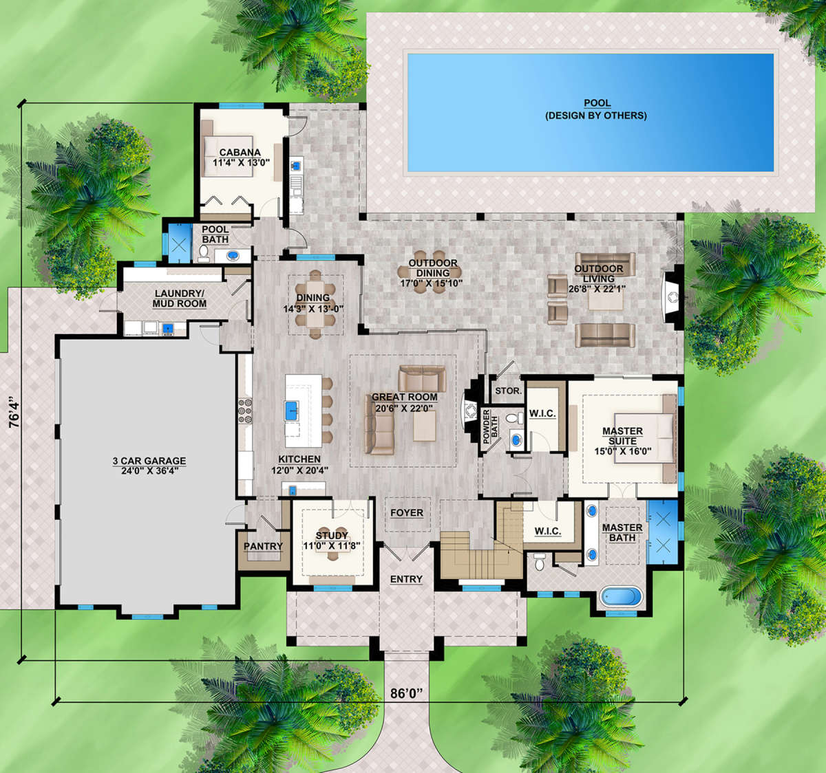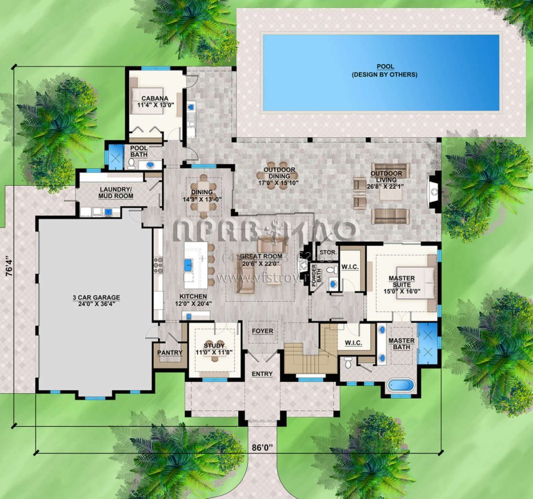 Поскольку этот проект разрабатывался иностранными архитекторами, для строительства дома требуется переработка проекта под действующие в России нормы. Данные визуализации проекта представлены для ознакомления с концепцией проекта. Проект разработан американским архитектурным бюро и представлен America's Best House Plans.