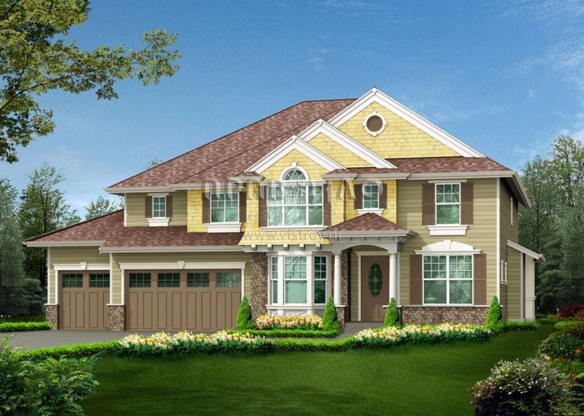 Проект двухэтажного дома с гаражом на три и более машин в американском стиле S5-345 (341-00138)