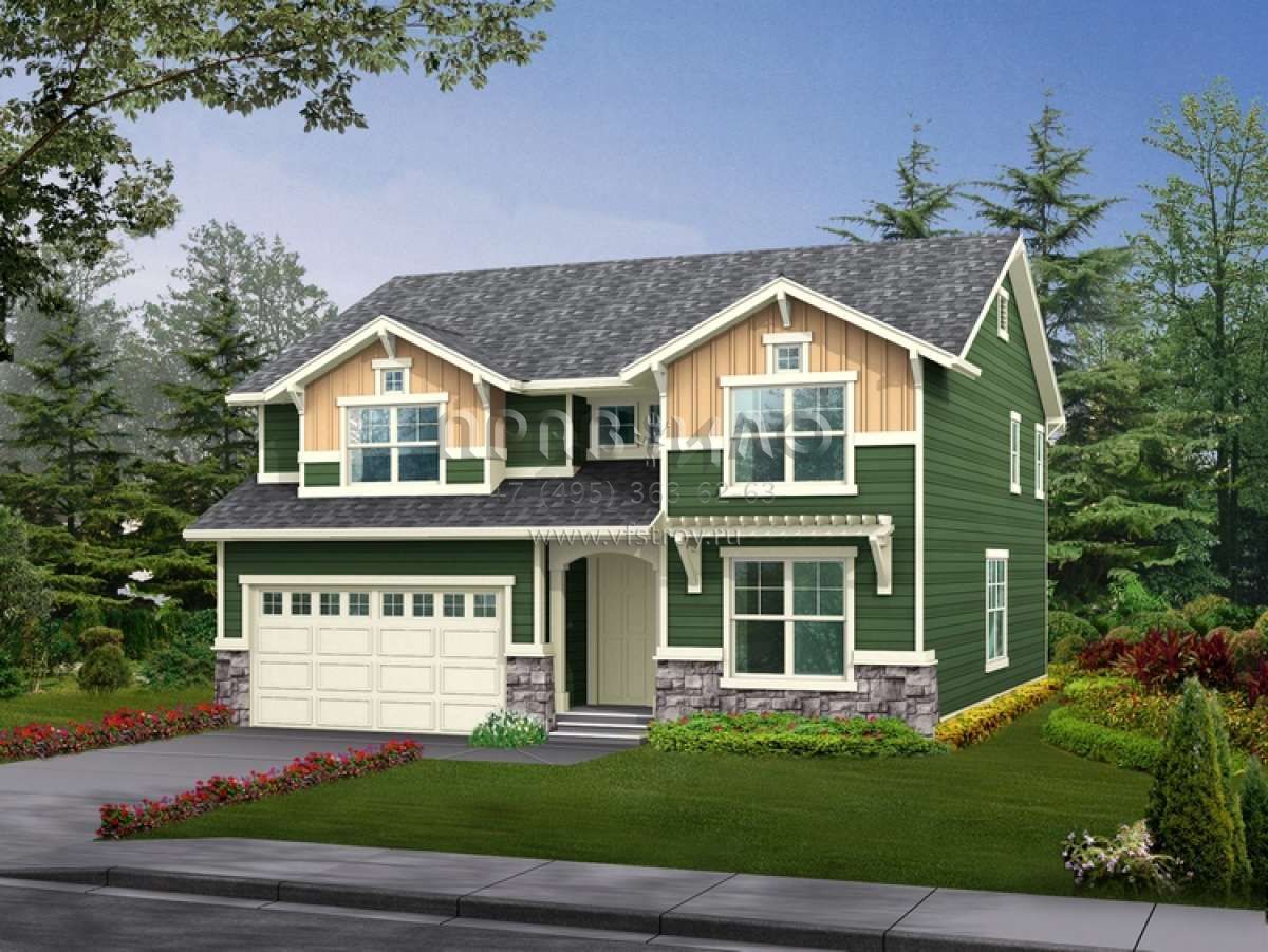 Проект двухэтажного дома с гаражом на две машины в американском стиле S5-345 (341-00205)