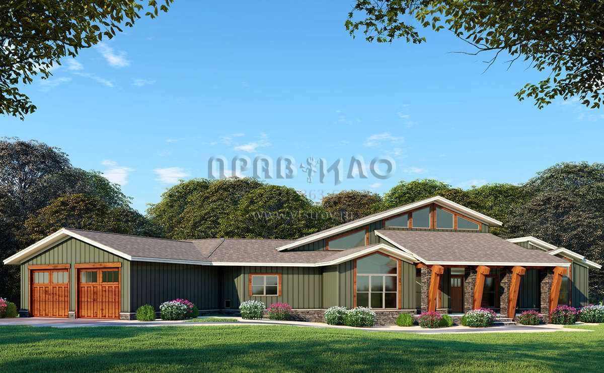 Проект одноэтажного дома с гаражом на две машины в современном стиле S5-345 (8318-00097)