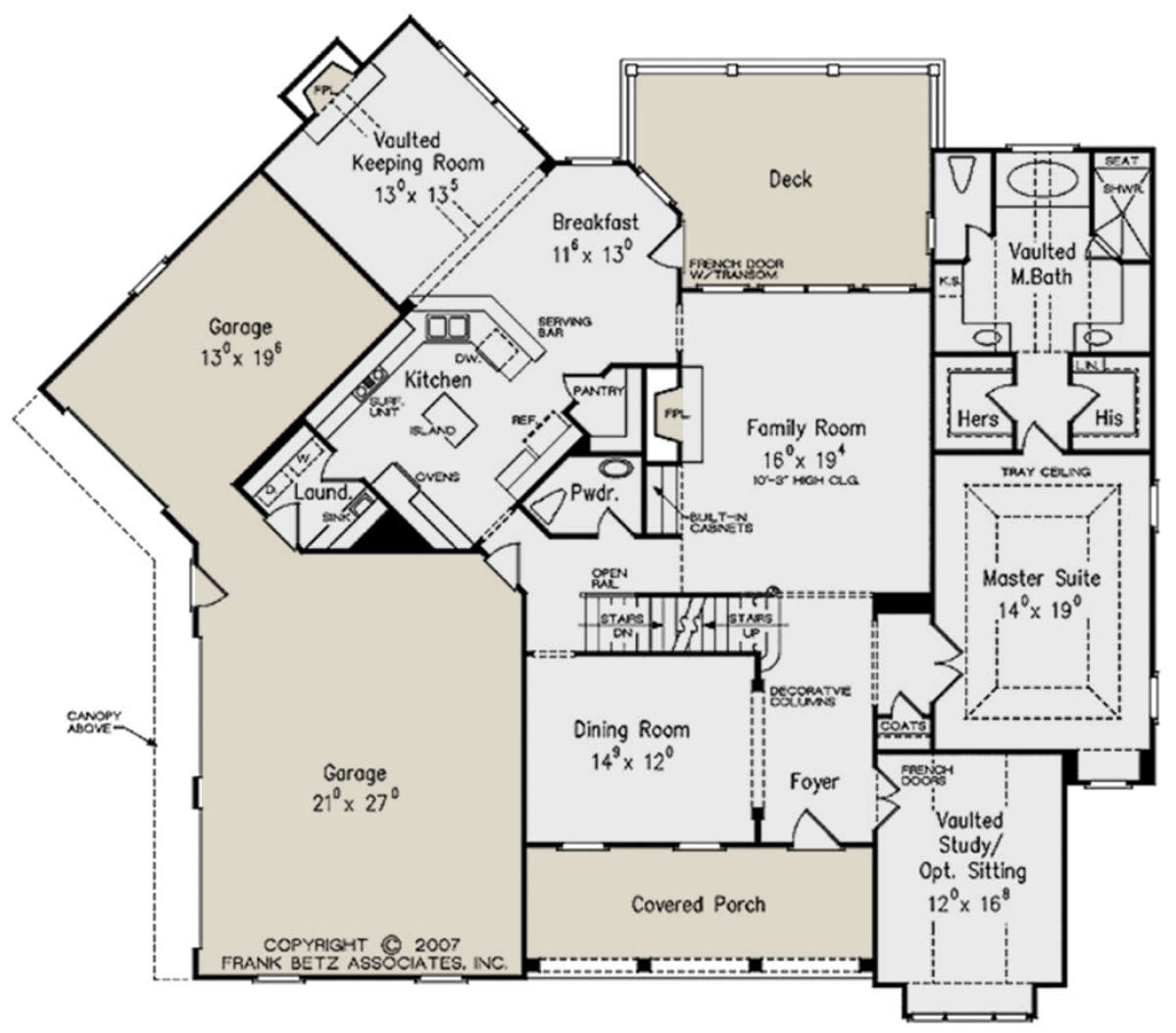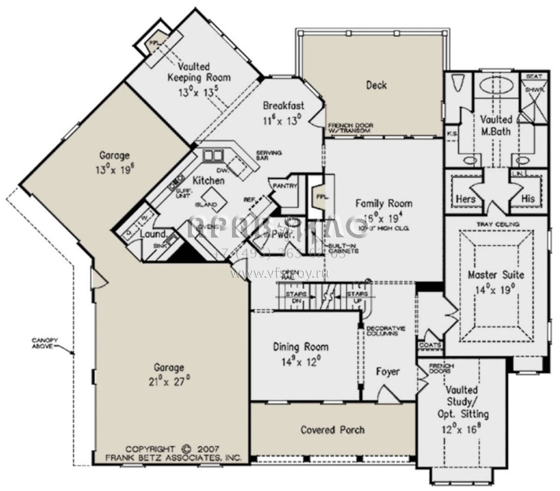 Проект двухэтажного дома с гаражом на три и более машин в стиле Ранчо S5-345 (8594-00230)