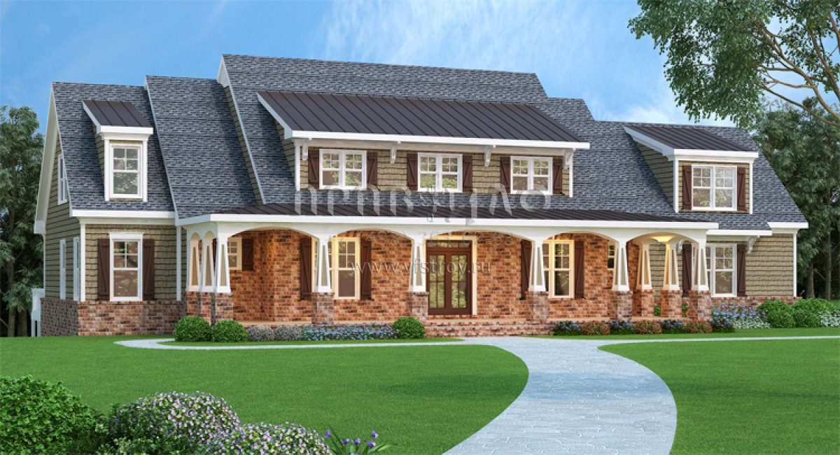 Проект двухэтажного дома с гаражом на две машины в американском стиле S5-347 (009-00068)