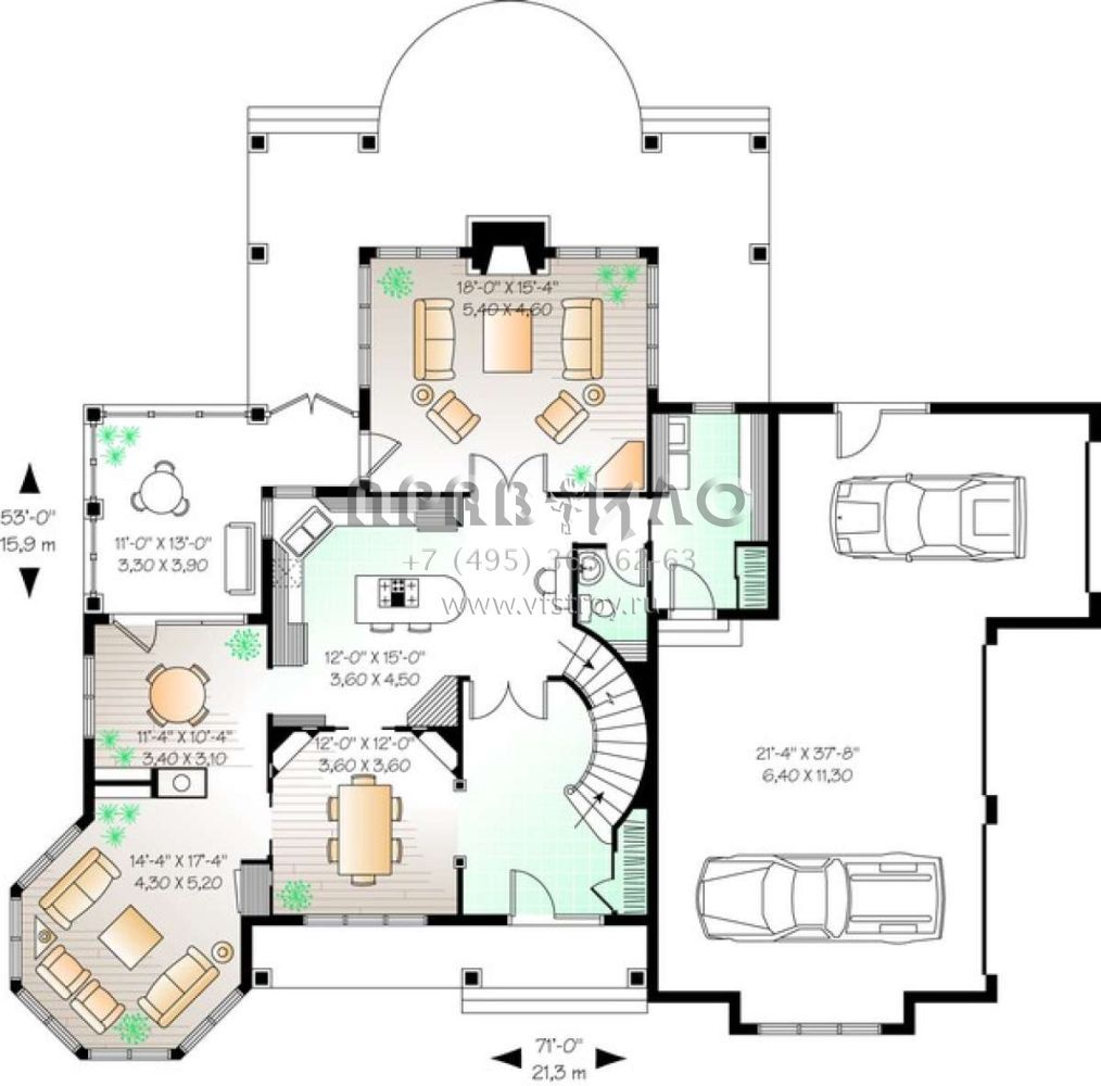 Проект двухэтажного дома с гаражом на три и более машин в стиле Ранчо S5-347 (034-00835)