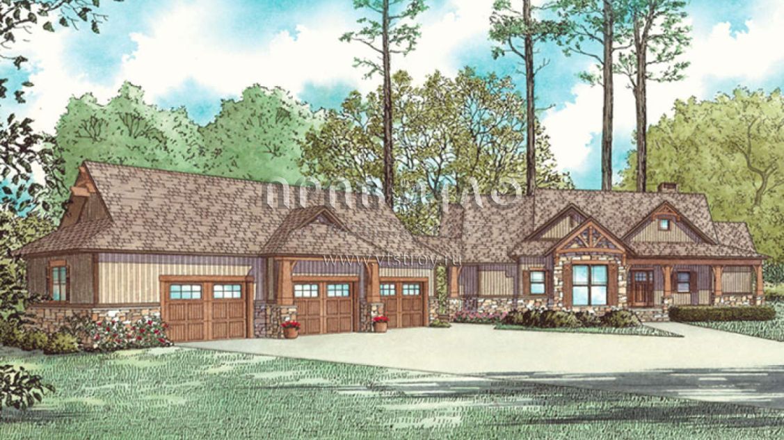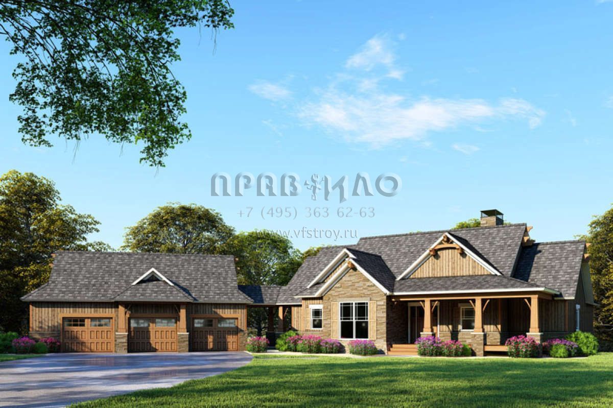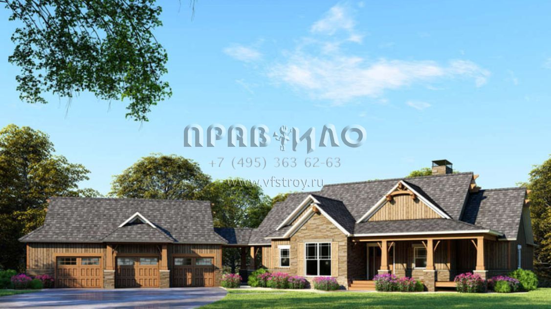 Проект одноэтажного дома с гаражом на три и более машин в американском стиле S5-347 (110-01054)