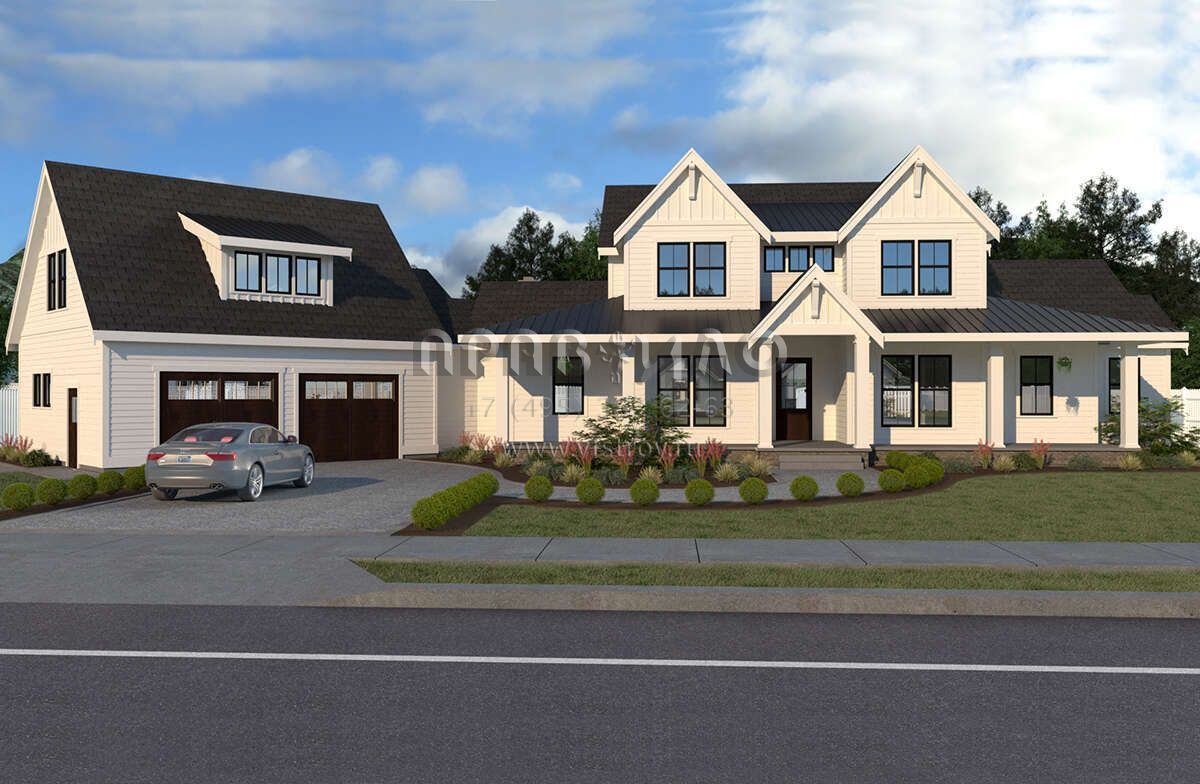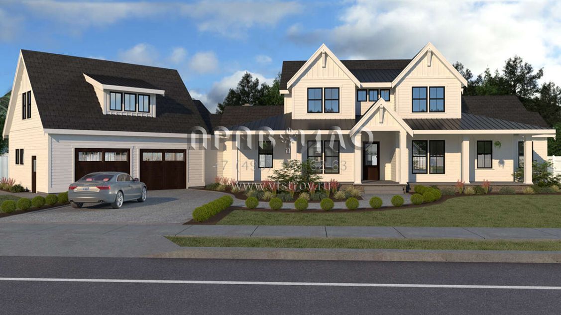 Проект двухэтажного дома с гаражом на две машины в современном стиле S5-347 (2464-00026)