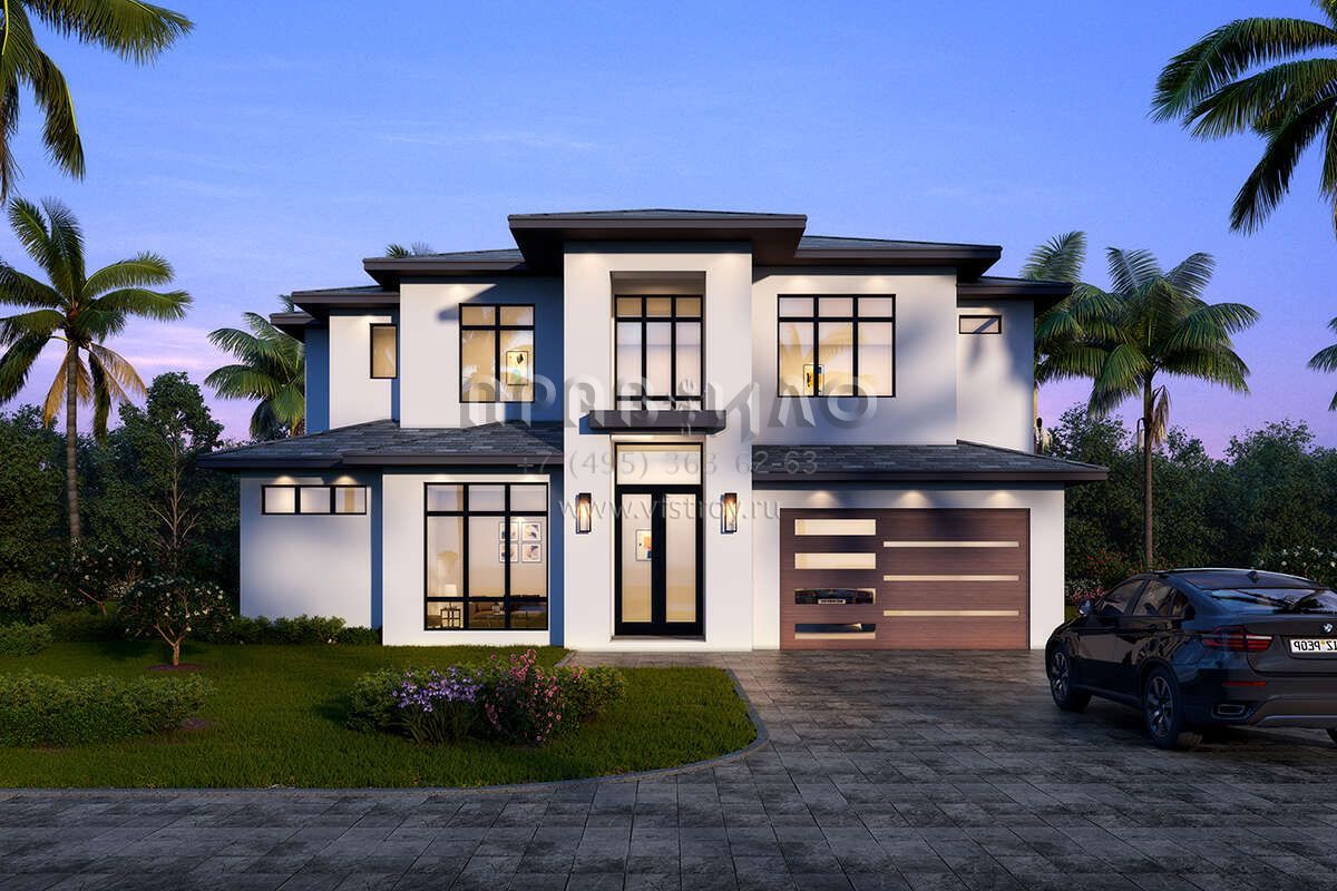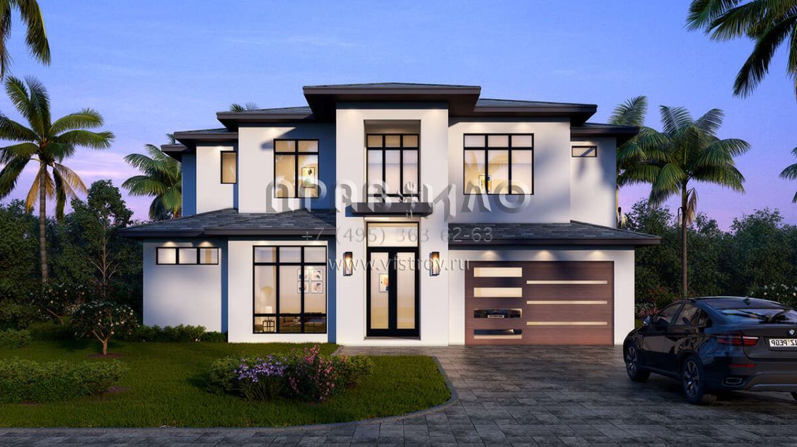 Проект двухэтажного дома с гаражом на две машины в современном стиле S5-347 (5565-00174)