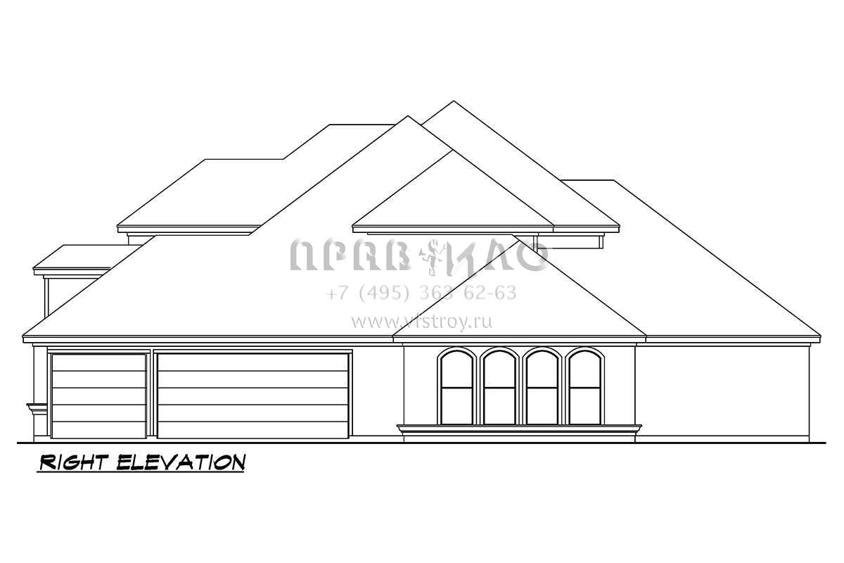 Это проект двухэтажного дома с гаражом на три и более машин жилой площадью 348 кв.м. Длина дома 22.3 м, ширина 20.7 м, высота 9.8 м. В доме три спальни и три санузла.