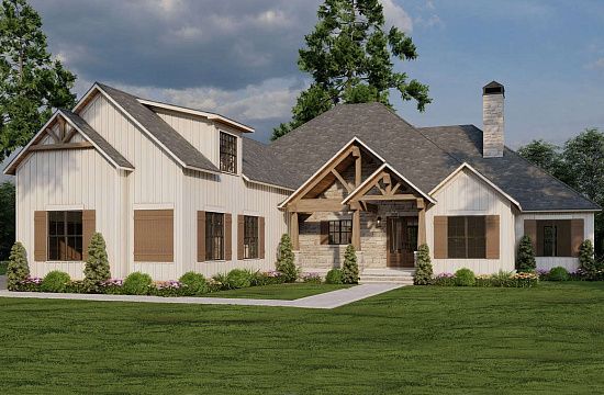 Проект двухэтажного дома с гаражом на две машины в стиле Ранчо S5-348 (7922-00131)