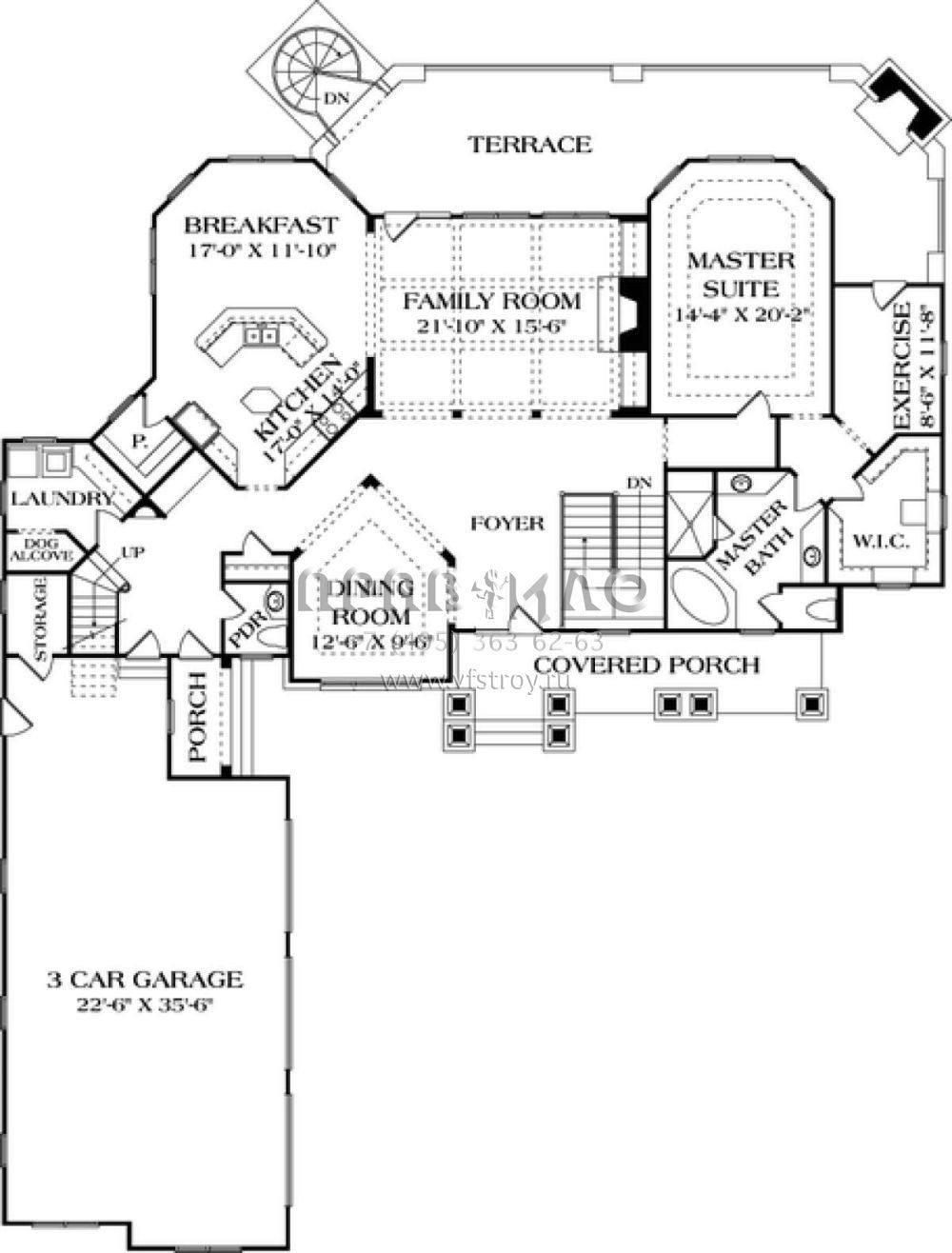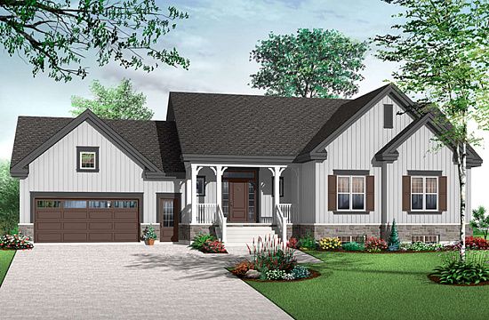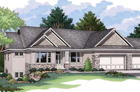 Проект одноэтажного дома с гаражом на три и более машин в стиле Ранчо S5-349 (3323-00625)