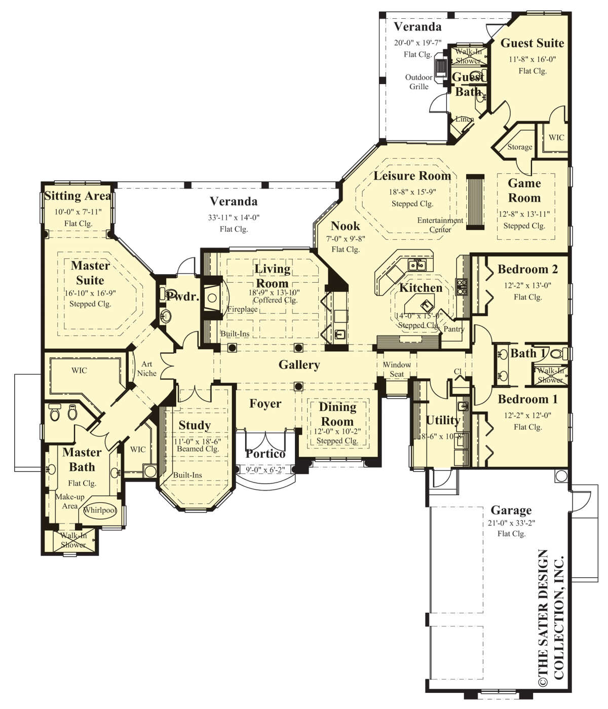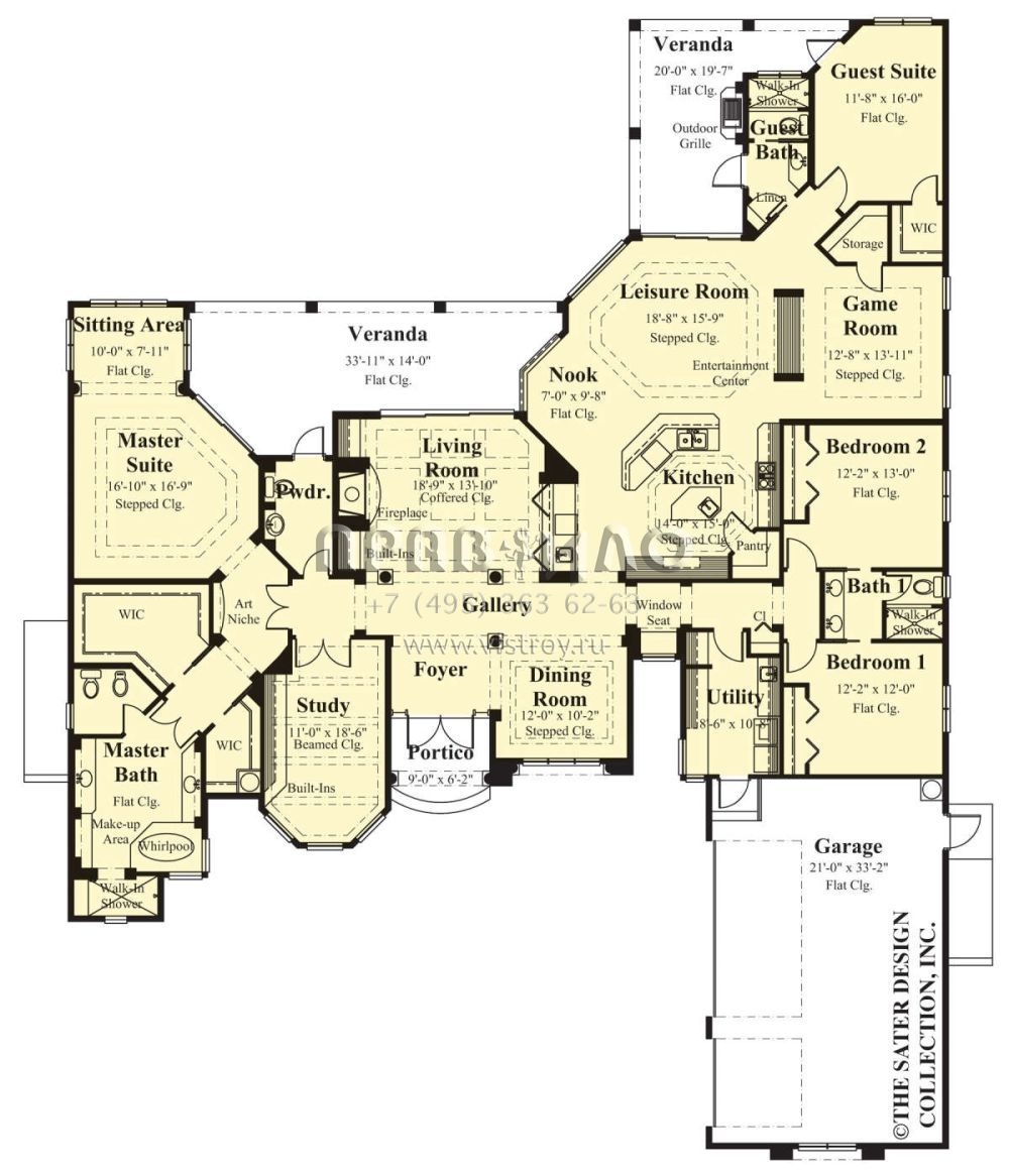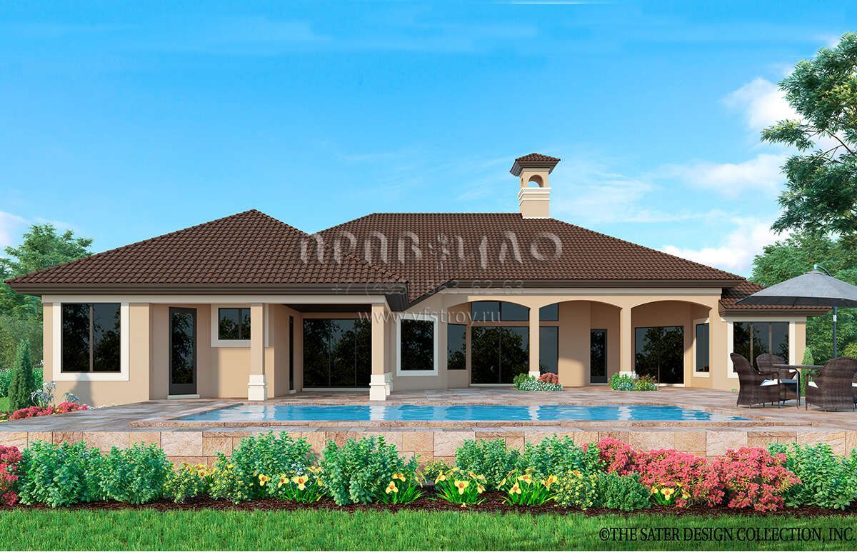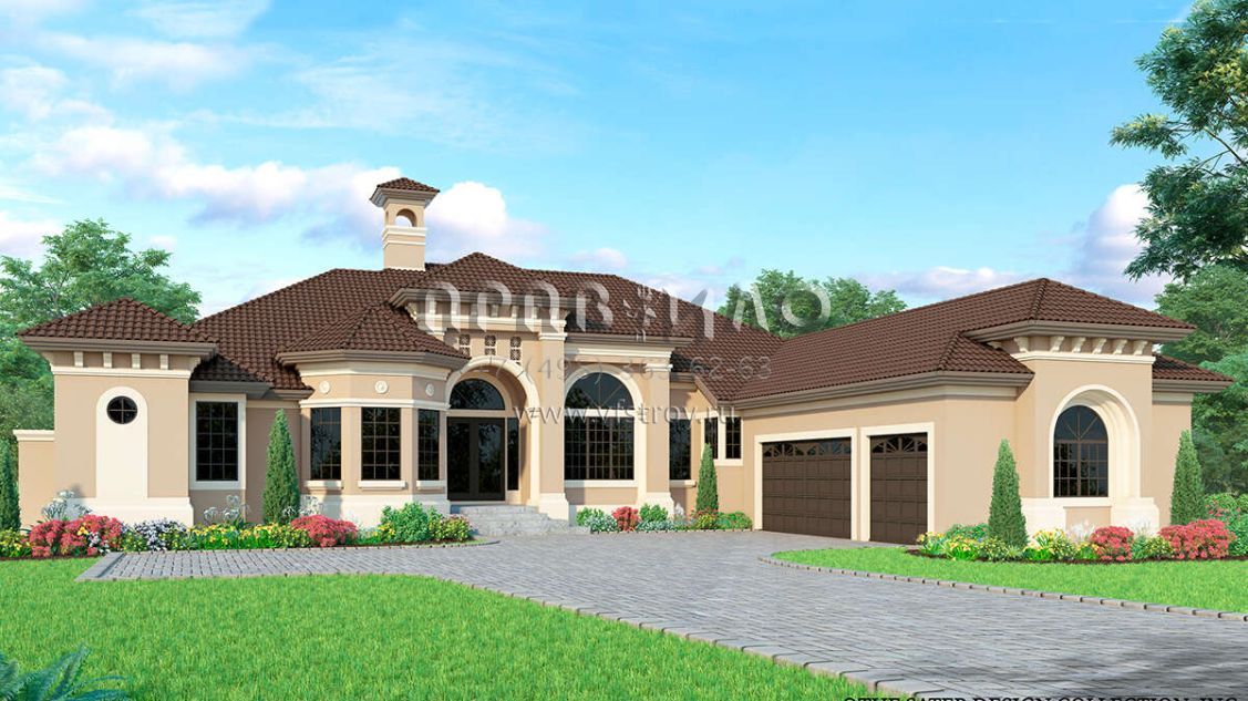 Проект одноэтажного дома с гаражом на три и более машин в прибрежном стиле S5-349 (8436-00088)