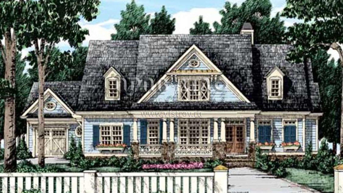 Проект двухэтажного дома с гаражом на три и более машин в стиле Ранчо S5-349 (8594-00285)