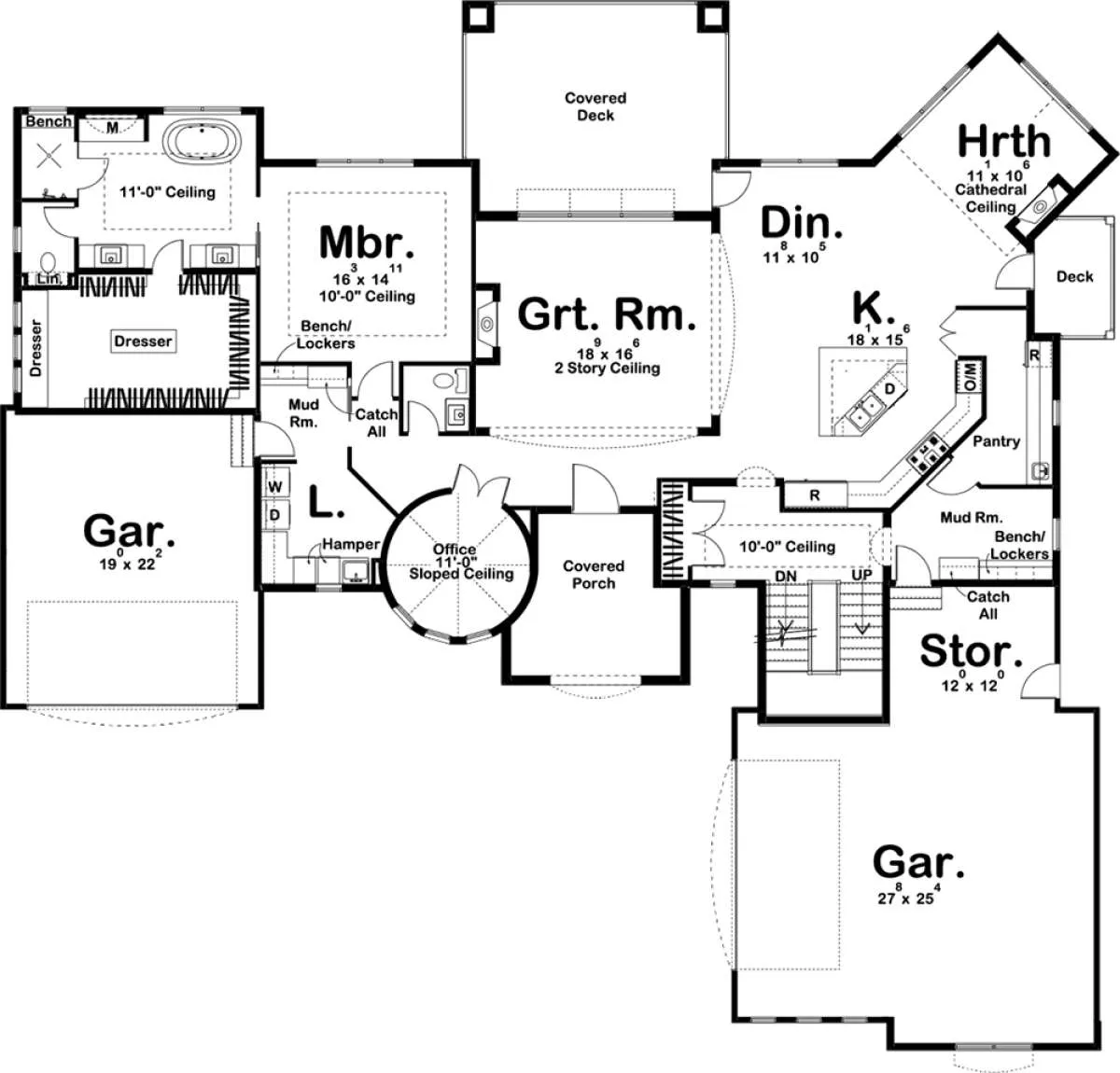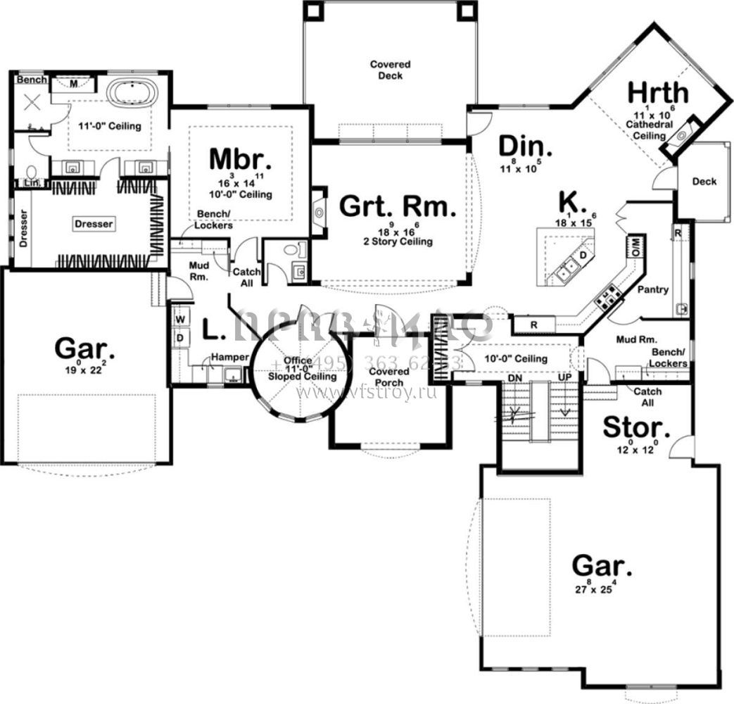 Проект двухэтажного дома с гаражом на три и более машин в английском стиле S5-349 (963-00214)