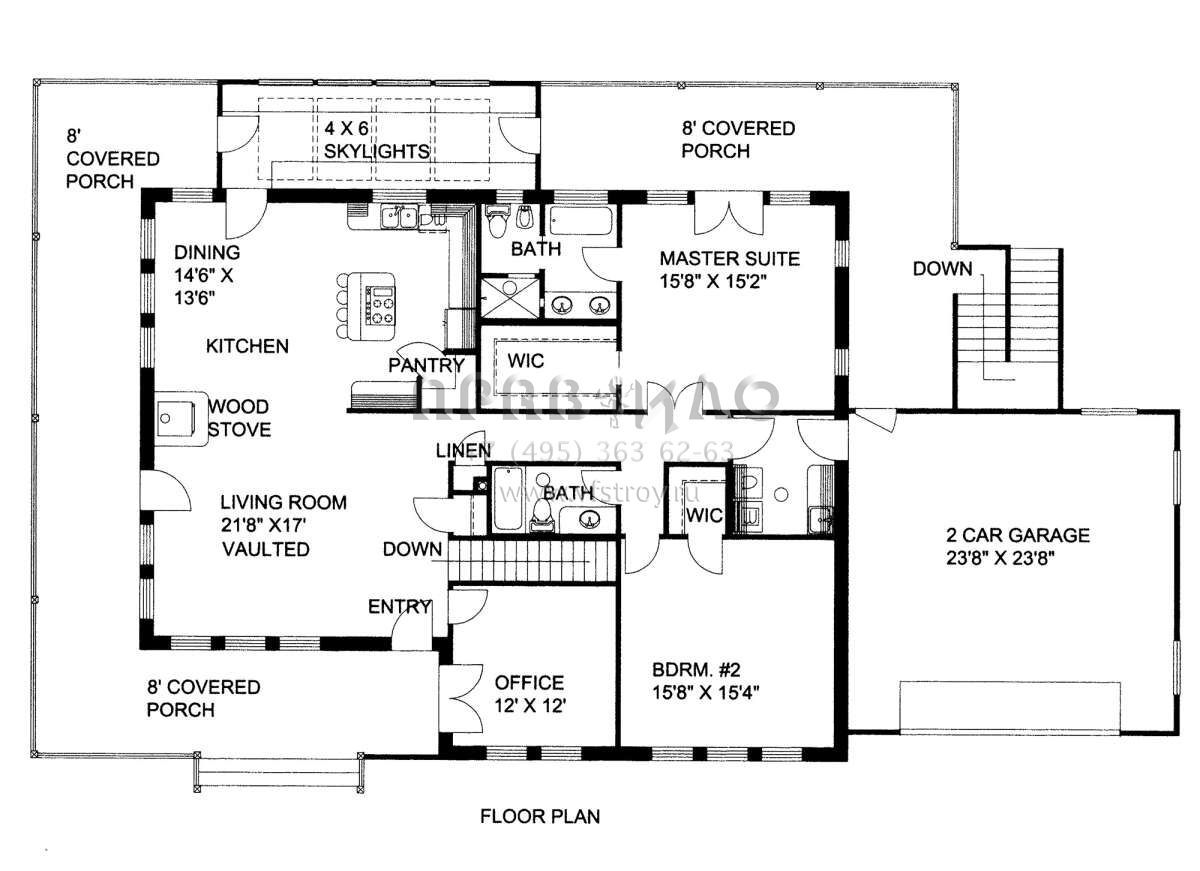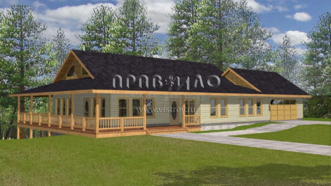 Проект одноэтажного дома с гаражом на две машины в прибрежном стиле S5-351 (039-00121)