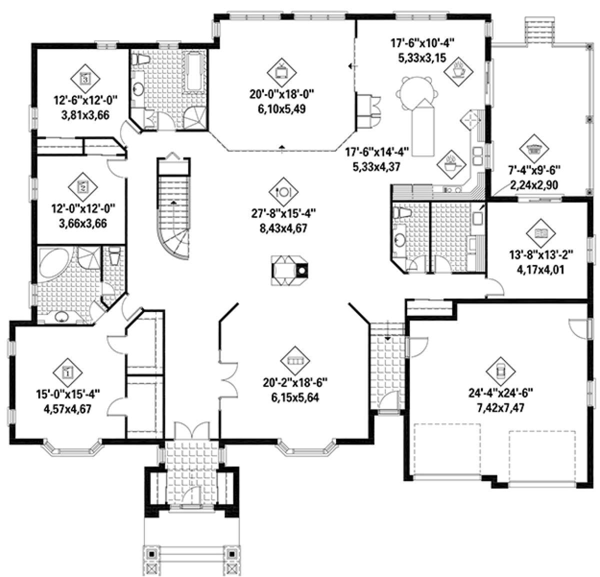 Проект одноэтажного дома с гаражом на две машины в стиле Ранчо S5-351 (6146-00362)