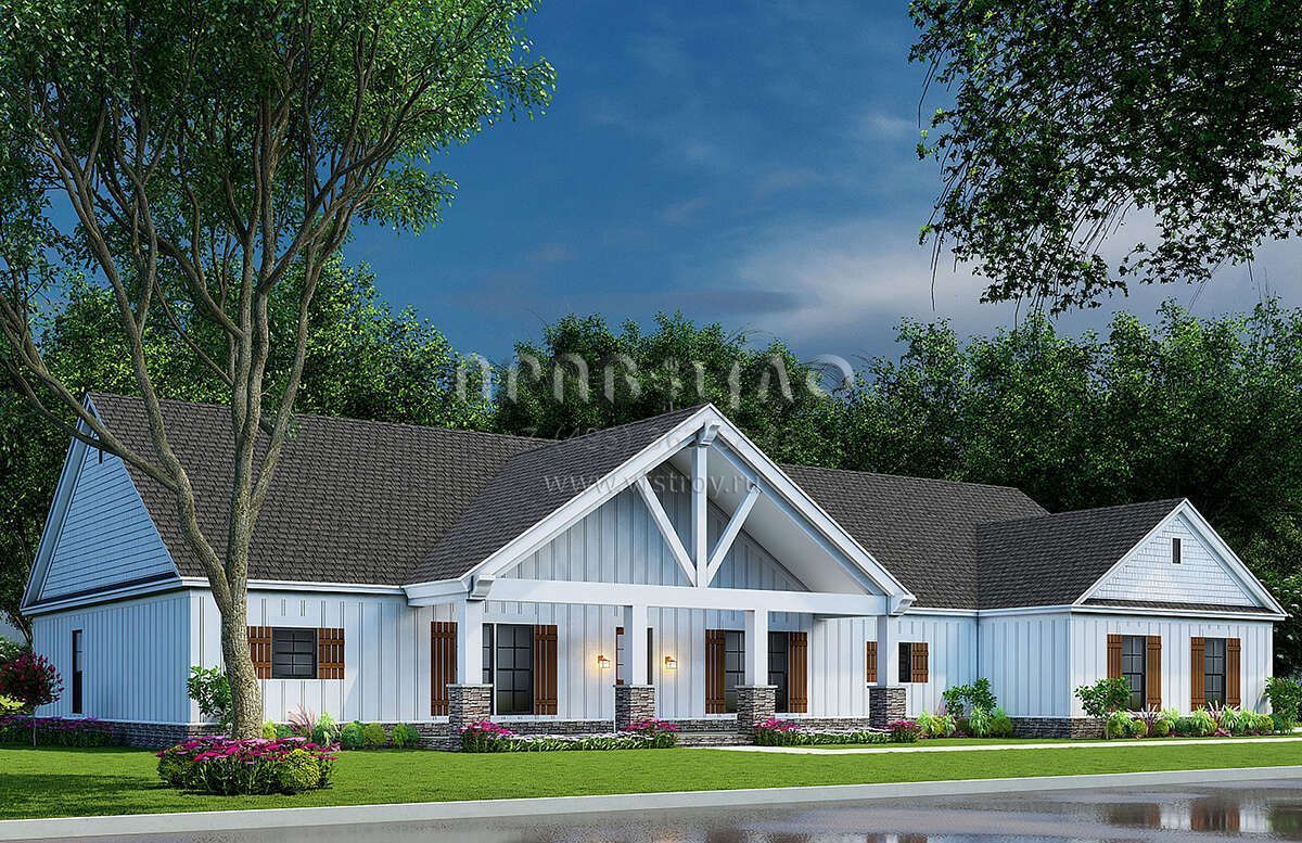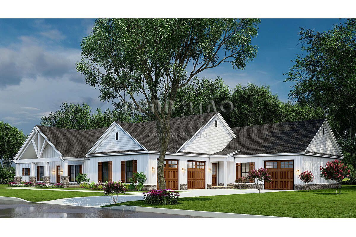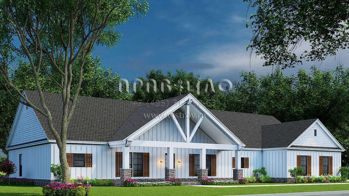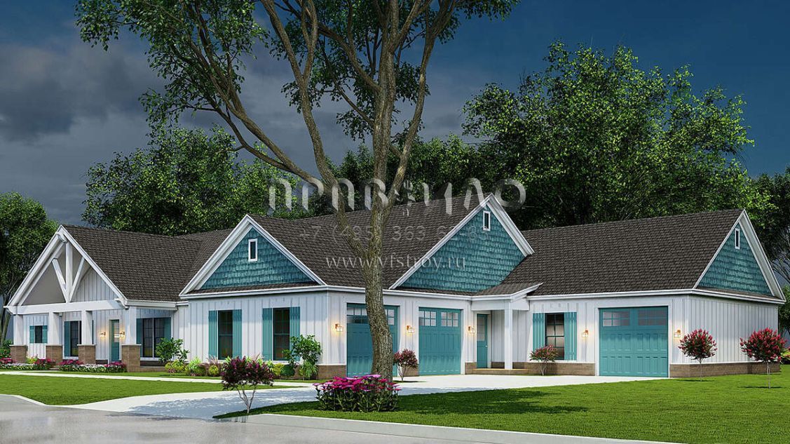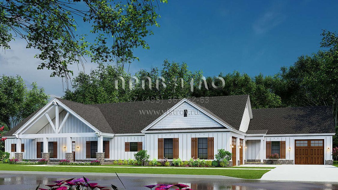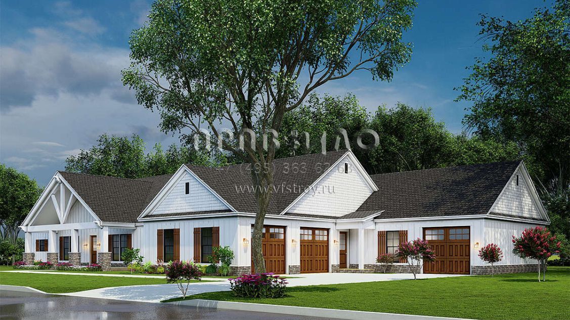 Проект одноэтажного дома с гаражом на три и более машин в американском стиле S5-351 (8318-00218)