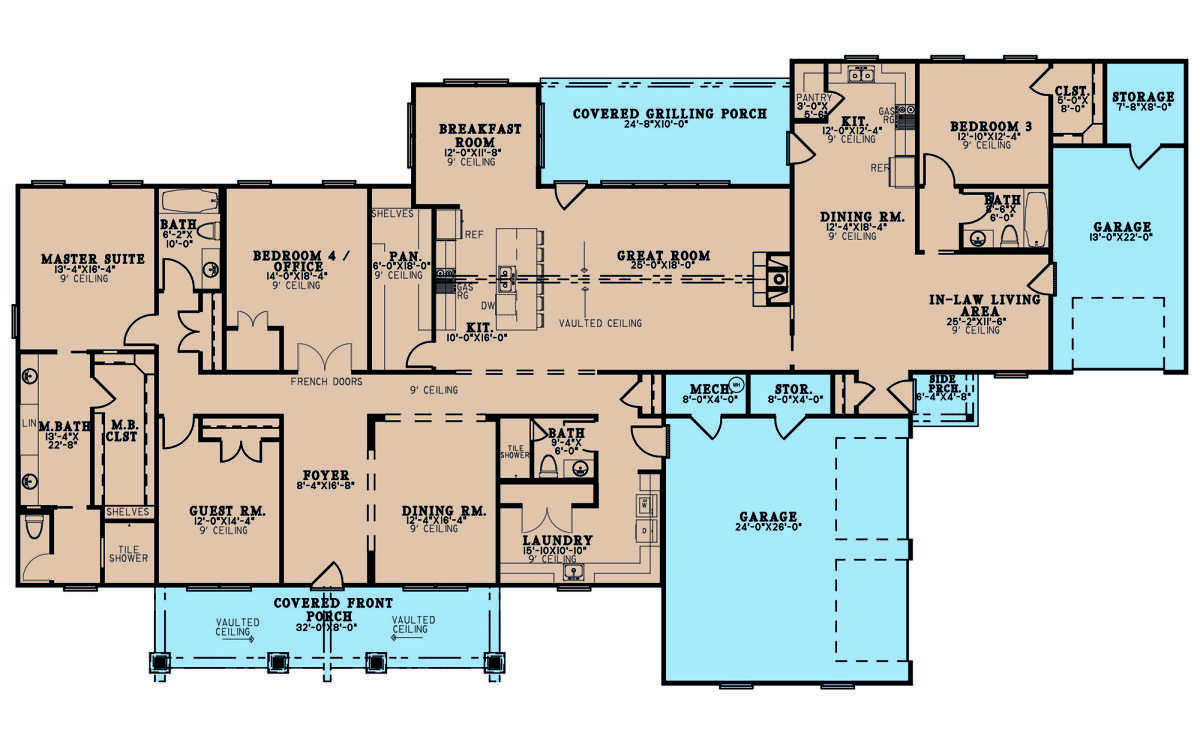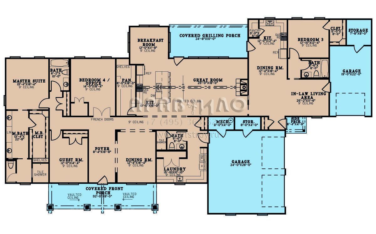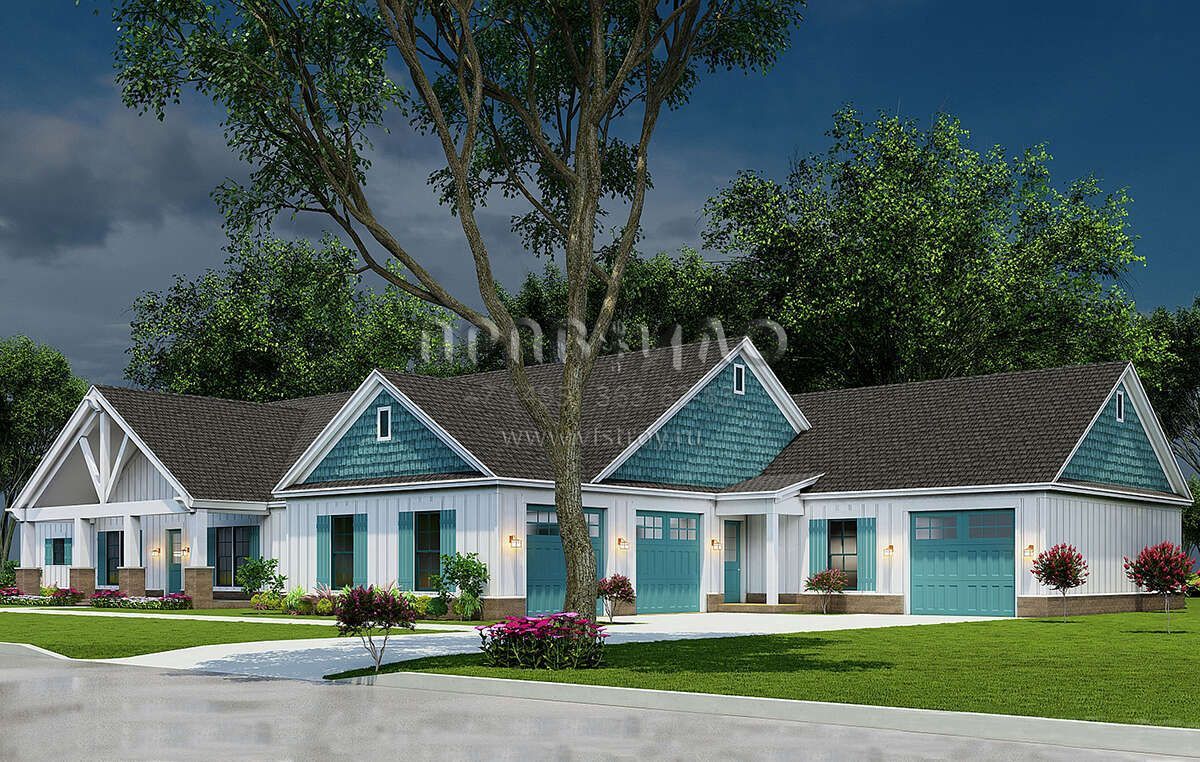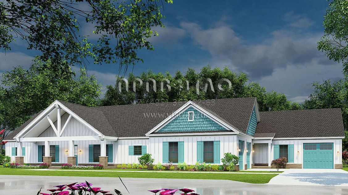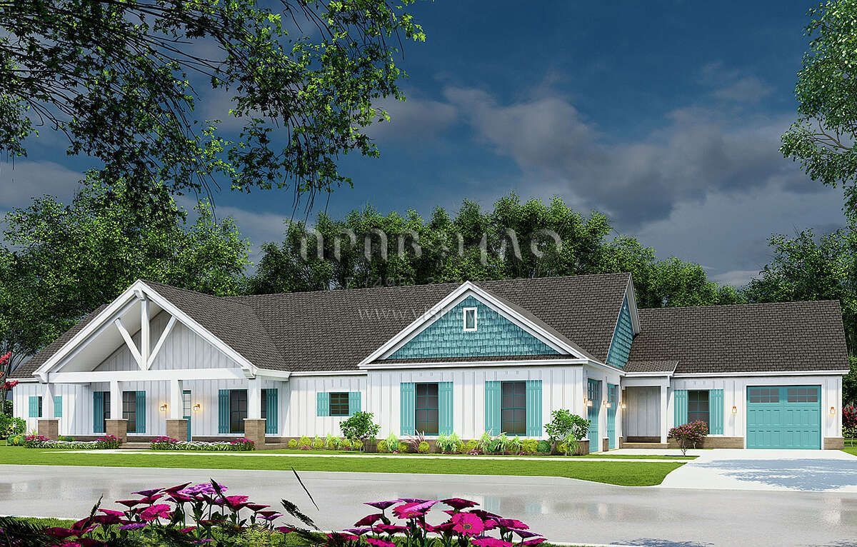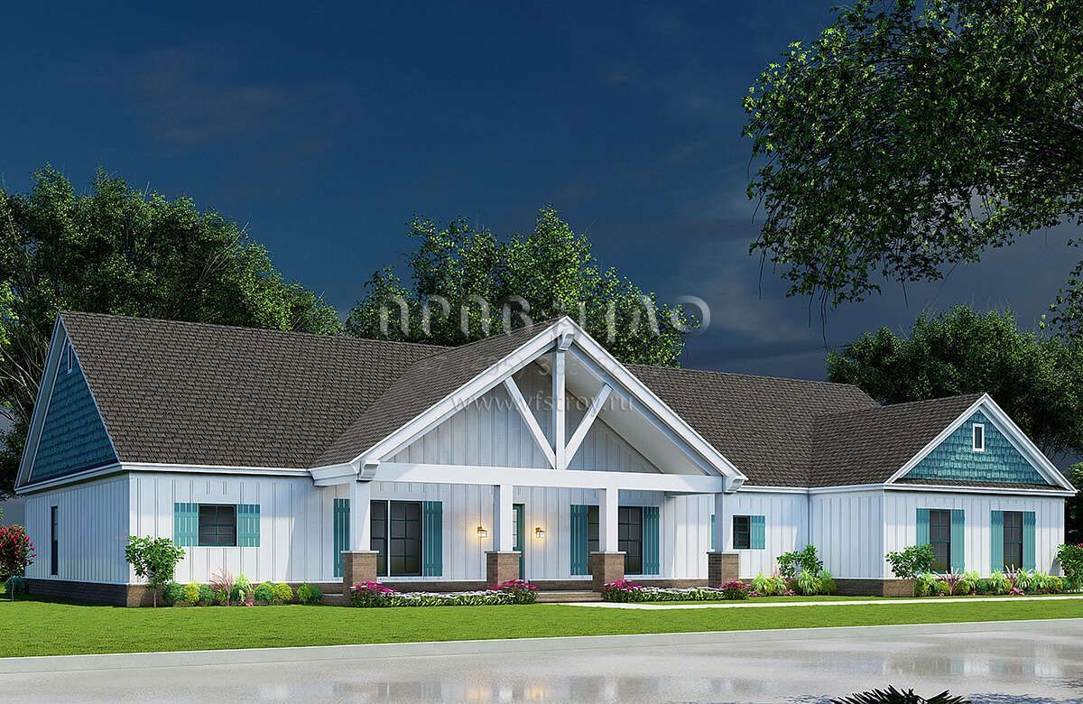 Проект одноэтажного дома с гаражом на три и более машин в американском стиле S5-351 (8318-00218)