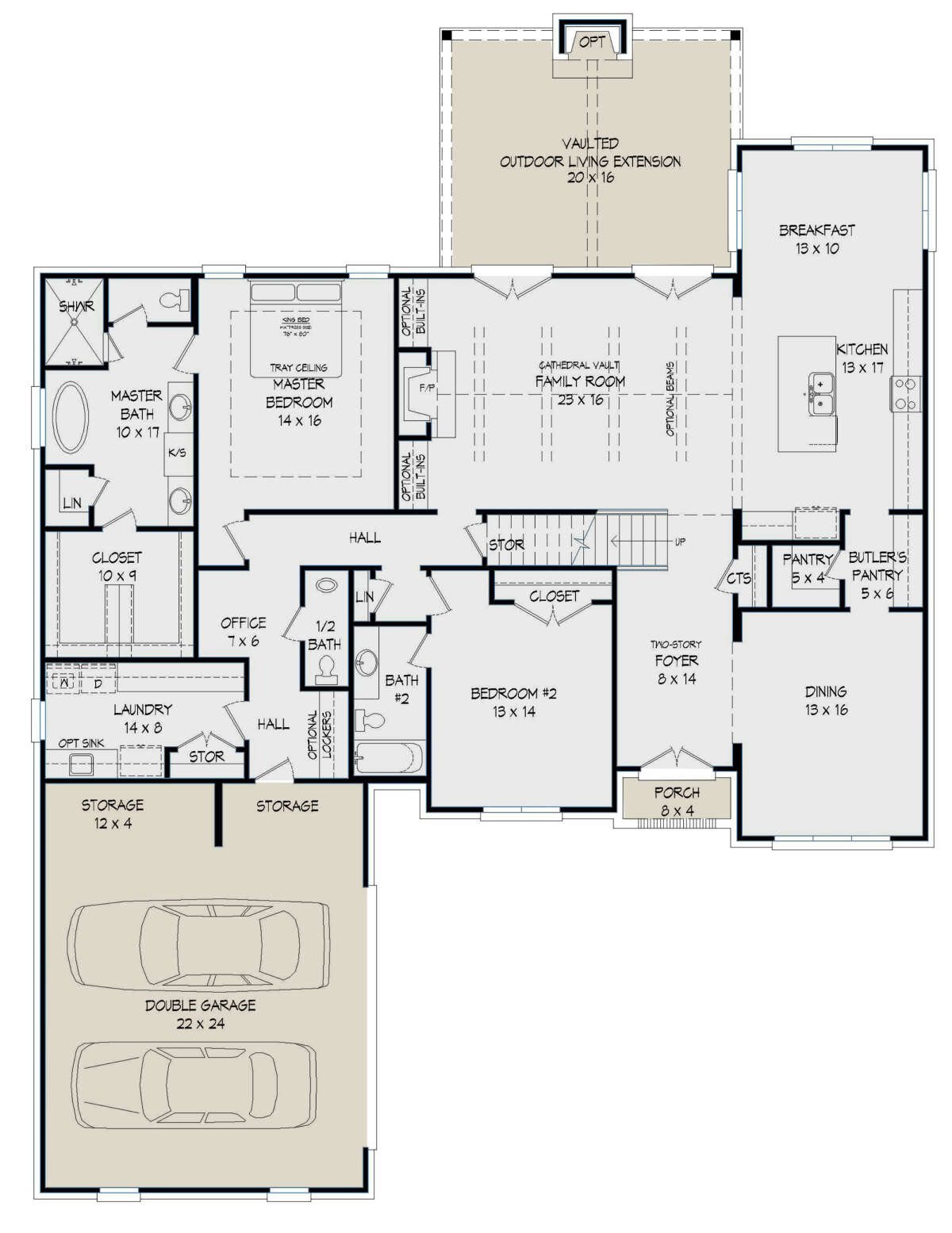 Проект двухэтажного дома с гаражом на две машины в стиле Ранчо S5-351 (940-00232)