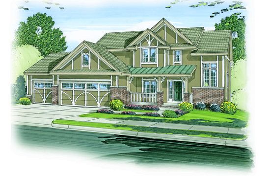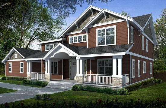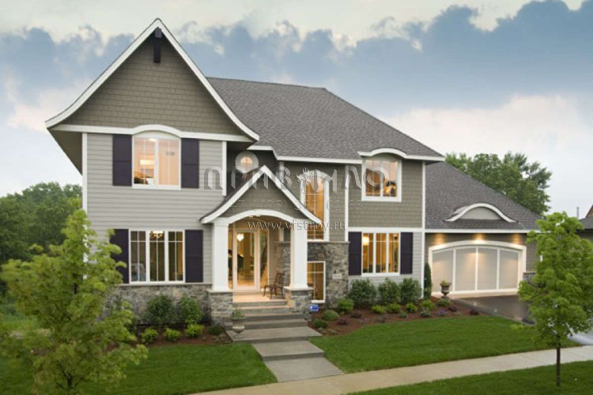 Проект двухэтажного дома с гаражом на три и более машин в американском стиле S5-353 (036-00225)