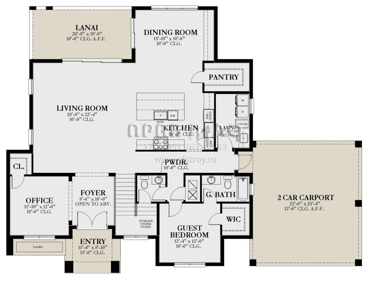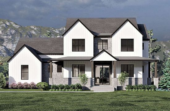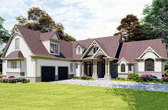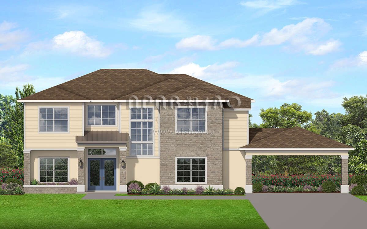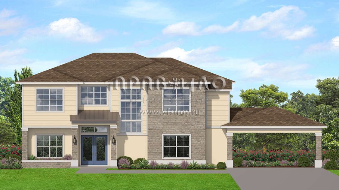 Проект двухэтажного дома с гаражом на две машины в стиле Ранчо S5-353 (3978-00273)