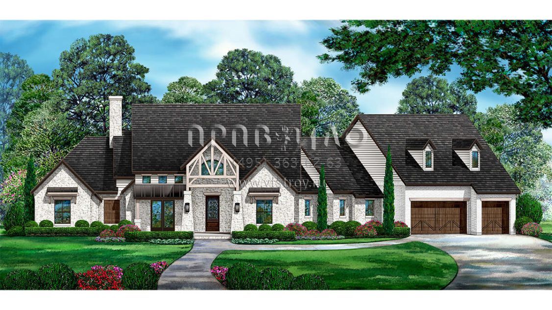 Проект одноэтажного дома с гаражом на три и более машин в американском стиле S5-353 (5445-00520)