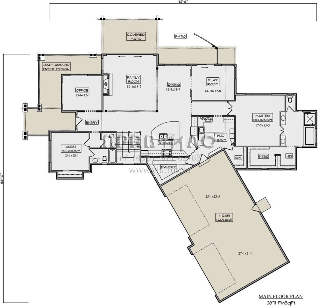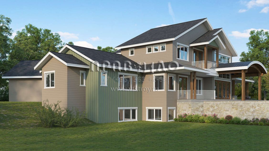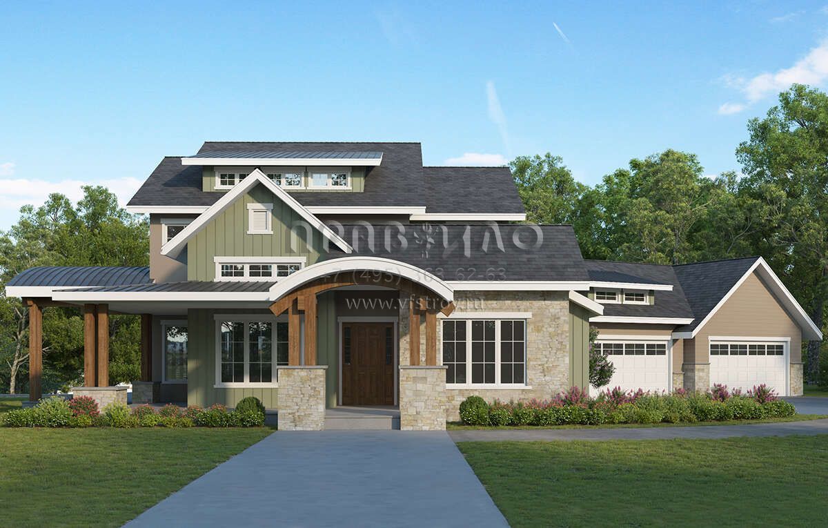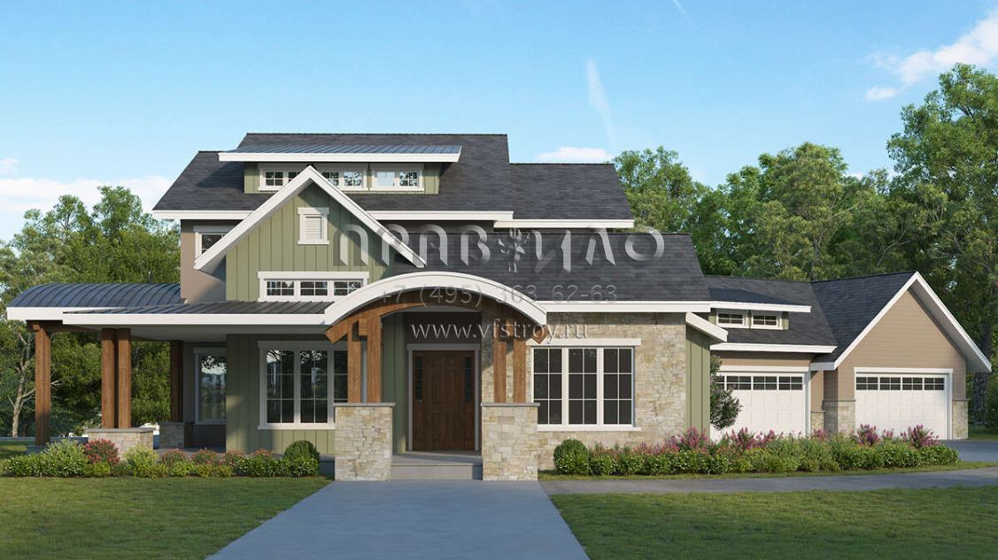 Проект двухэтажного дома с гаражом на три и более машин в американском стиле S5-353 (5631-00189)