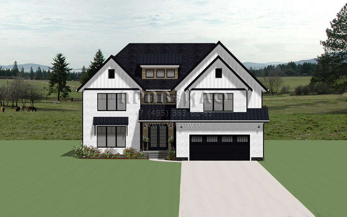 Проект двухэтажного дома с гаражом на две машины в современном стиле S5-353 (6849-00131)