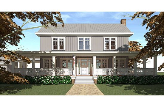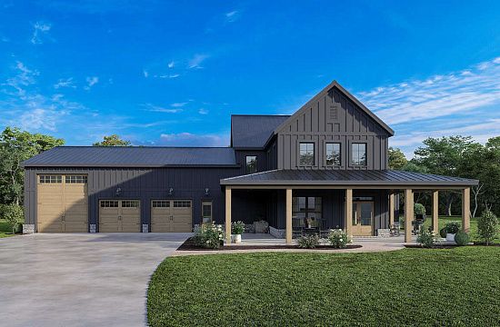 Проект двухэтажного дома с гаражом на три и более машин в стиле Ранчо S5-353 (7922-00214)