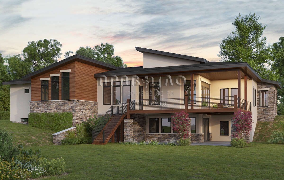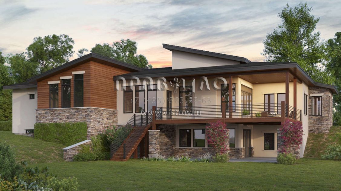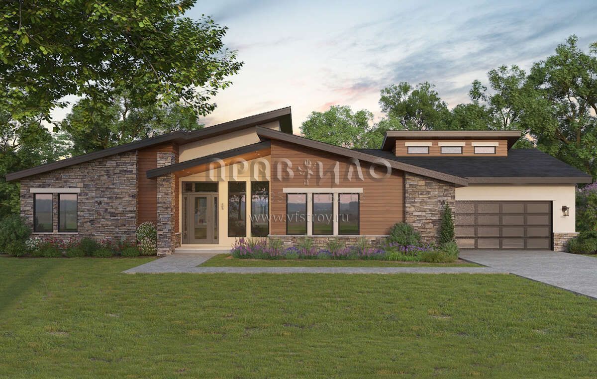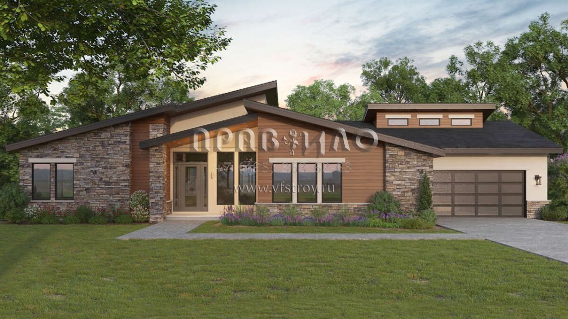 Проект одноэтажного дома с гаражом на три и более машин в современном стиле S5-354 (5631-00169)
