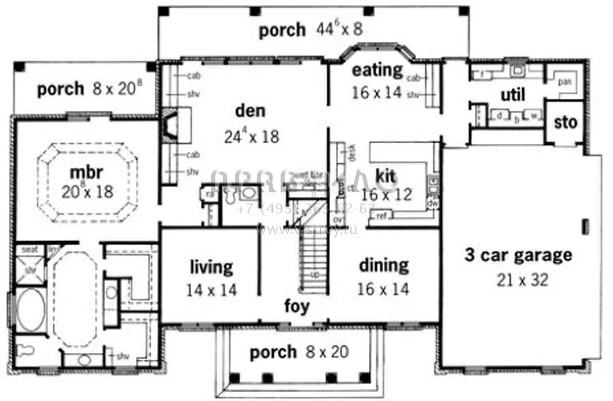 Проект двухэтажного дома с гаражом на три и более машин в стиле Особняк S5-354 (9035-00132)