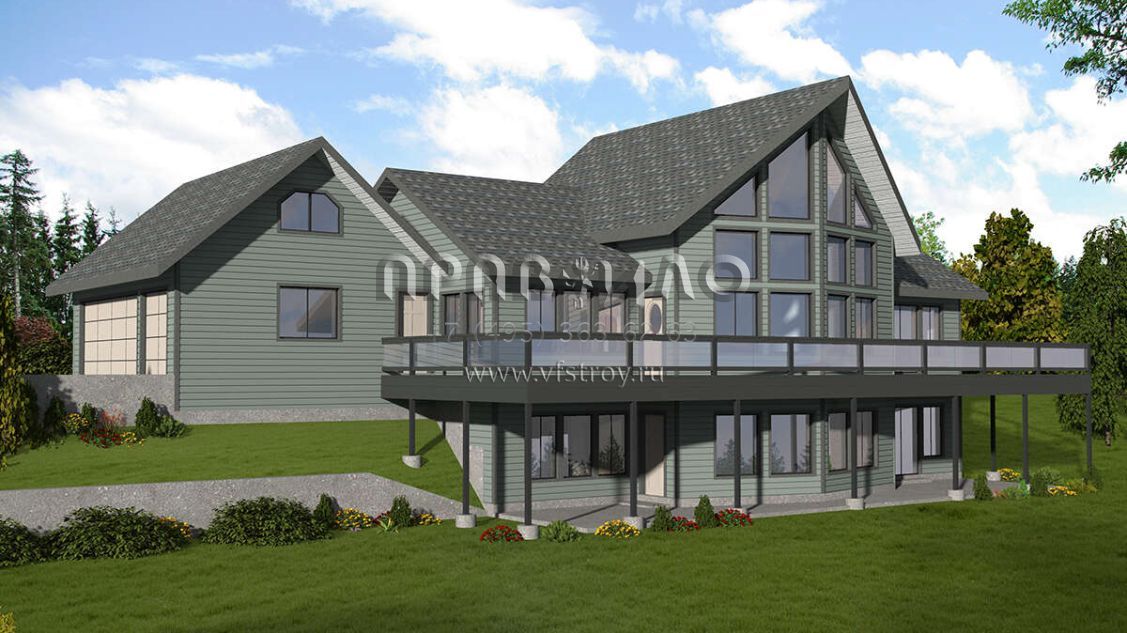 Проект двухэтажного дома с гаражом на три и более машин в стиле Шале S5-355 (039-00087)