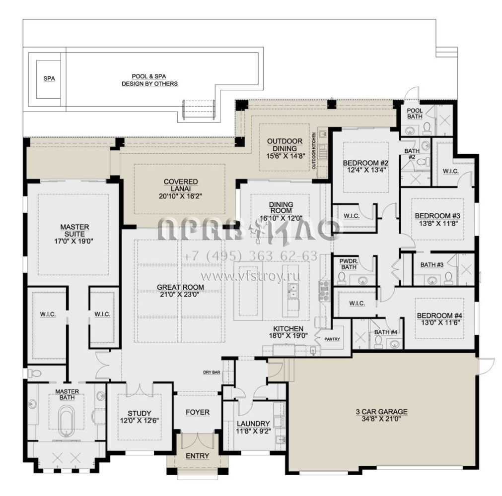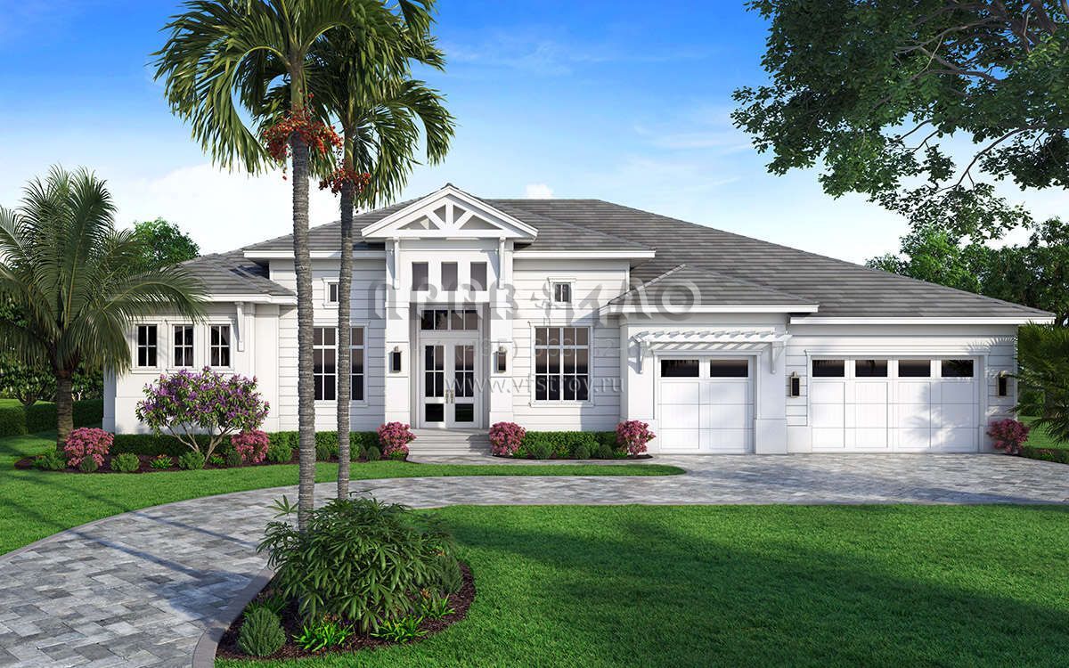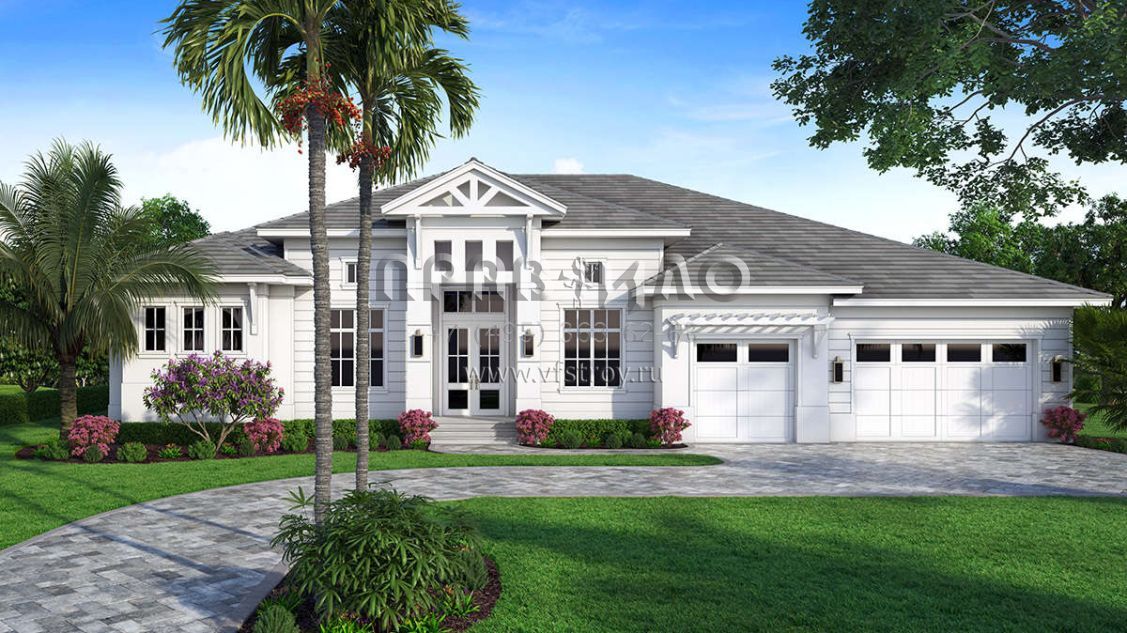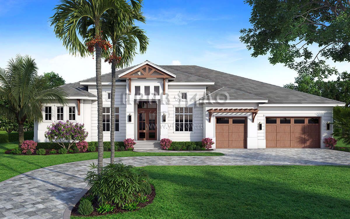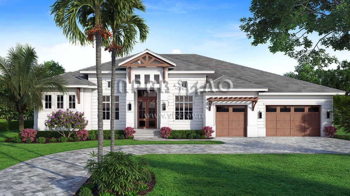 Проект одноэтажного дома с гаражом на три и более машин в прибрежном стиле S5-355 (207-00107)