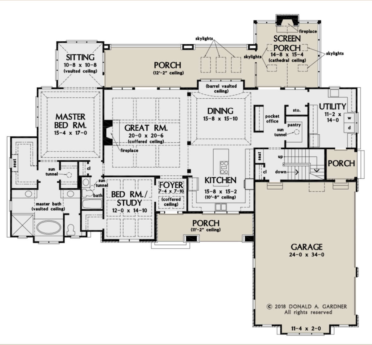 Проект одноэтажного дома с гаражом на три и более машин в американском стиле S5-355 (2865-00042)