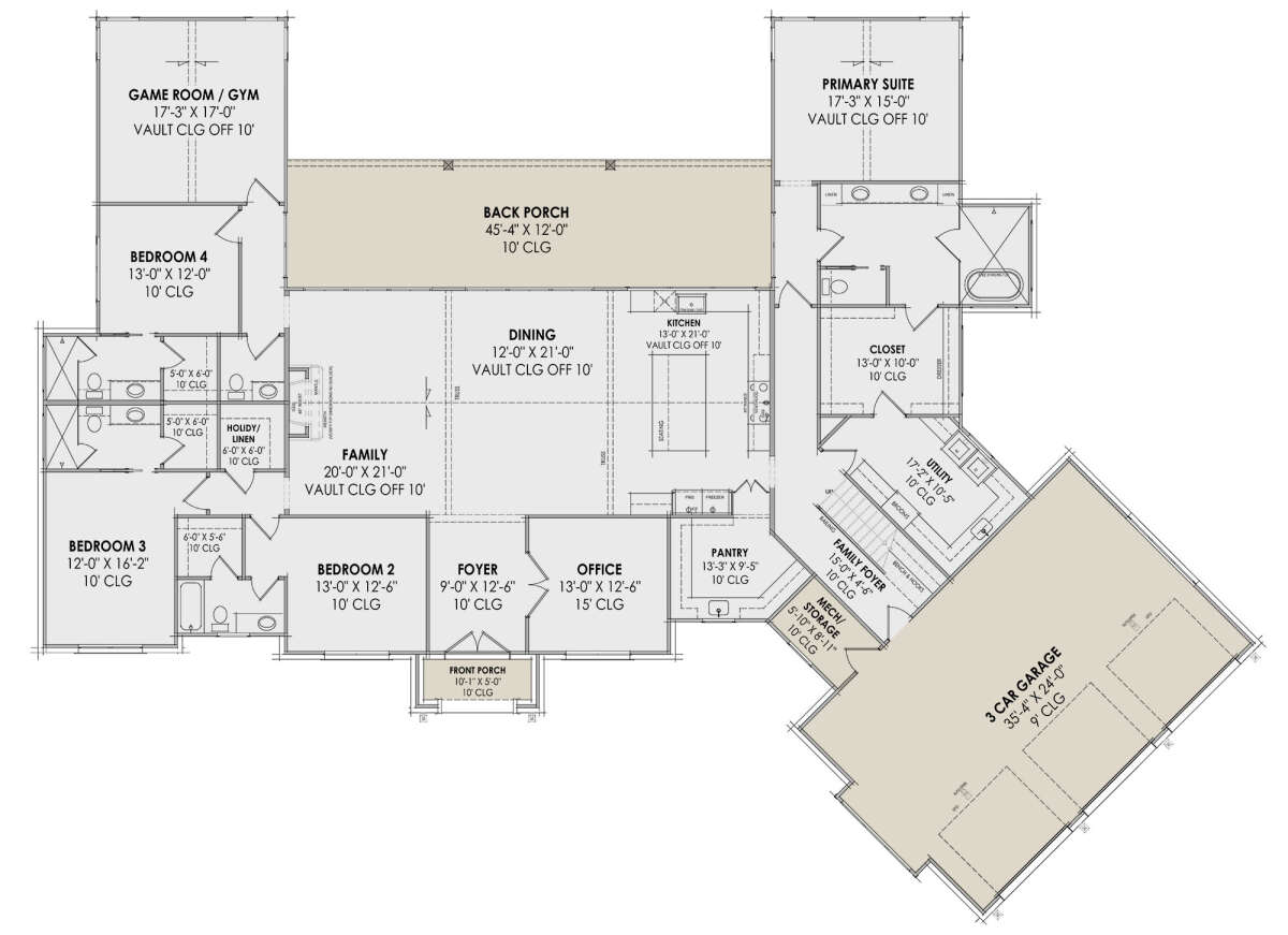 Проект одноэтажного дома с гаражом на три и более машин в современном стиле S5-355 (7983-00020)