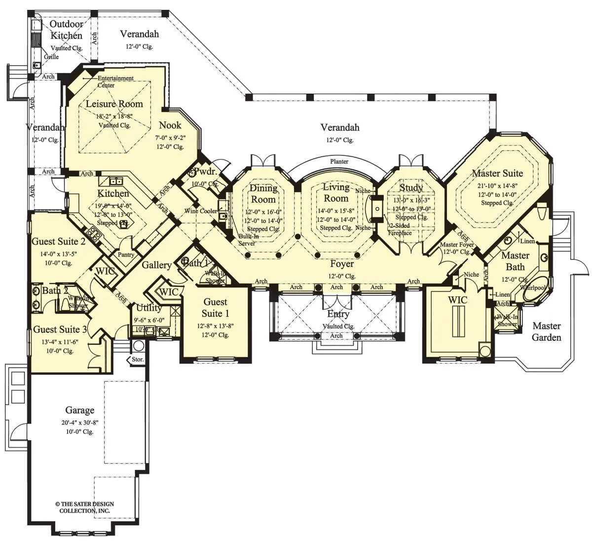 Проект одноэтажного дома с гаражом на три и более машин в прибрежном стиле S5-355 (8436-00070)
