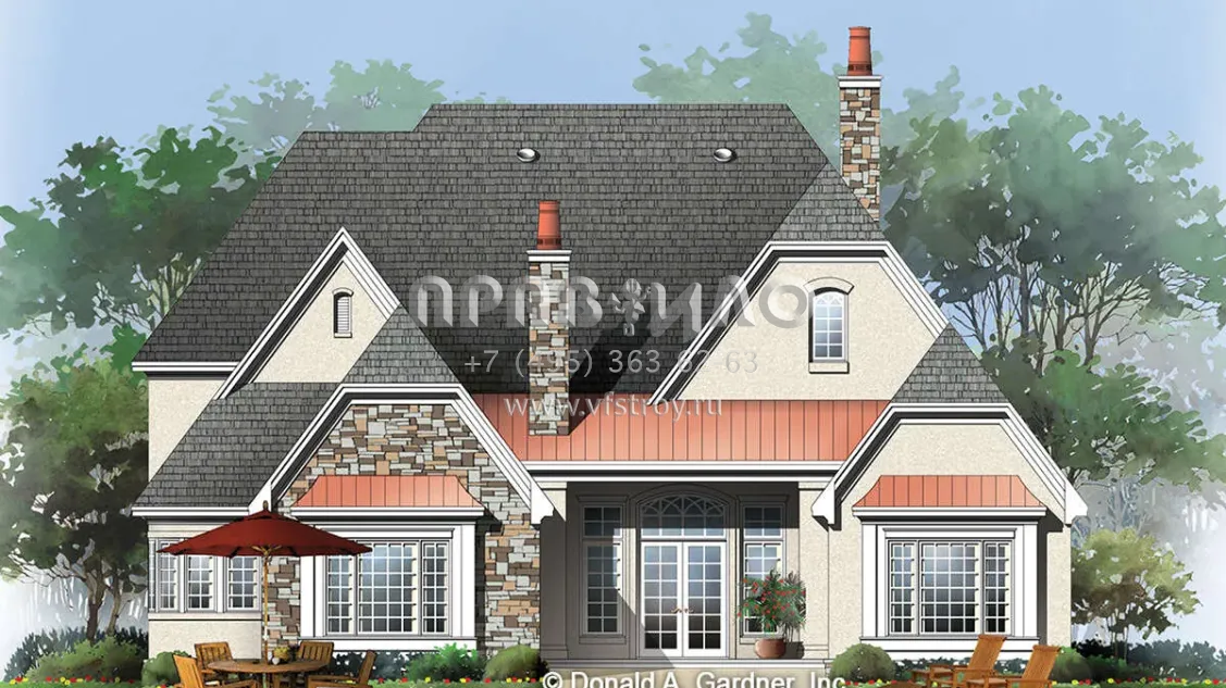 Проект двухэтажного дома с гаражом на три и более машин в английском стиле S5-356 (2865-00341)