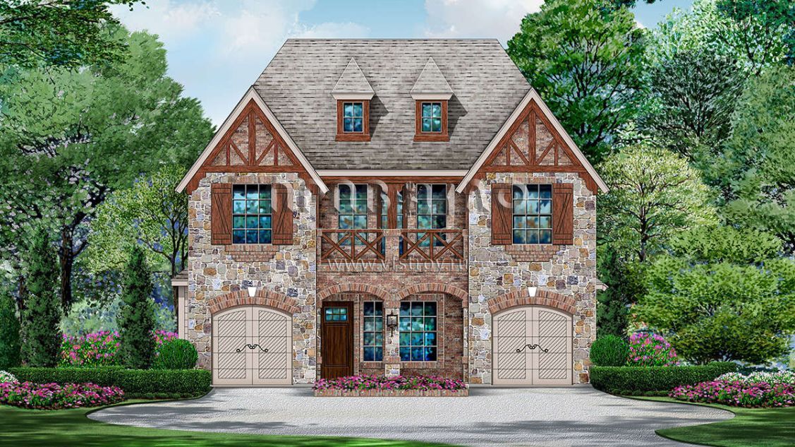 Проект двухэтажного дома с гаражом на две машины в английском стиле S5-356 (5445-00353)