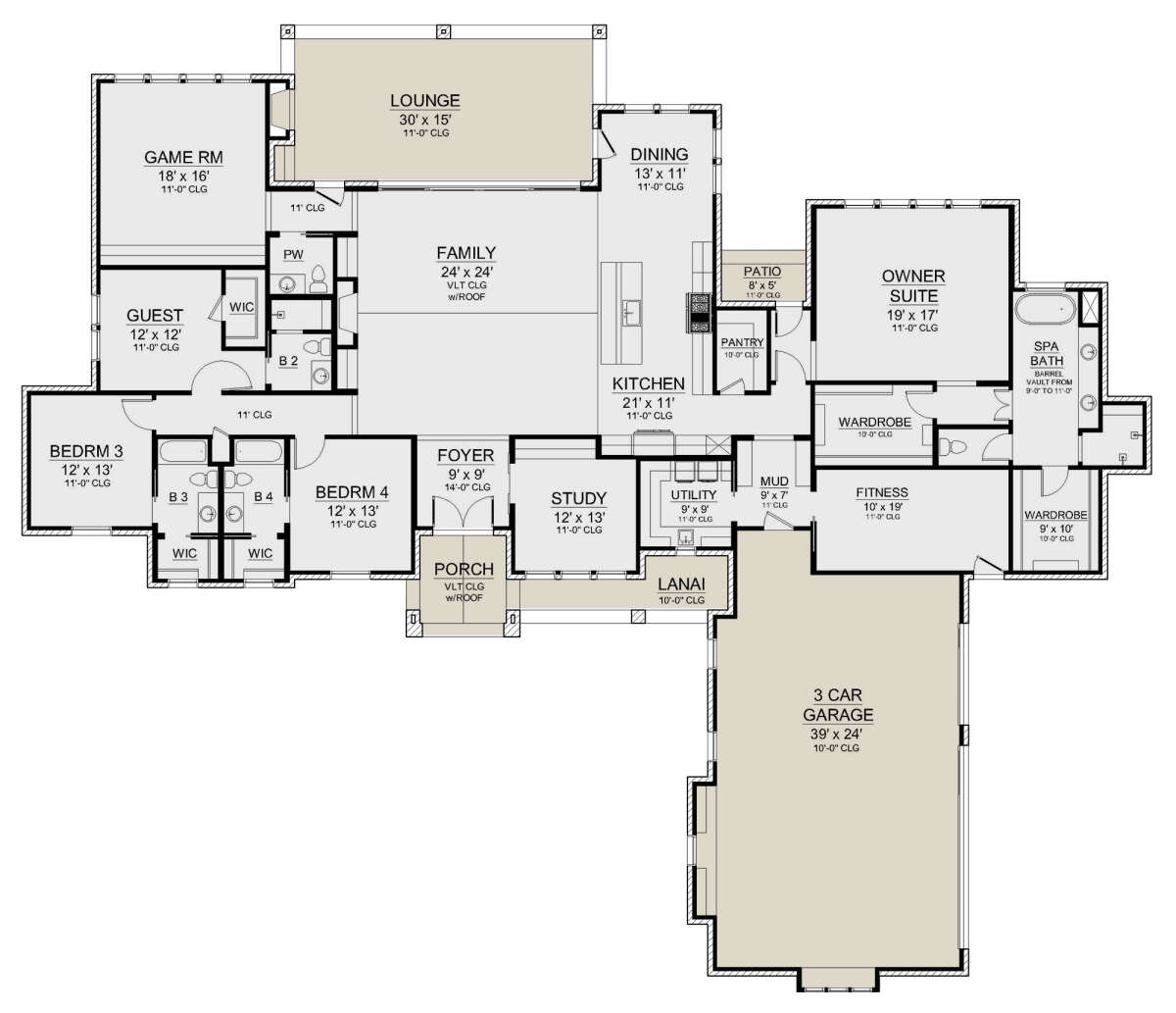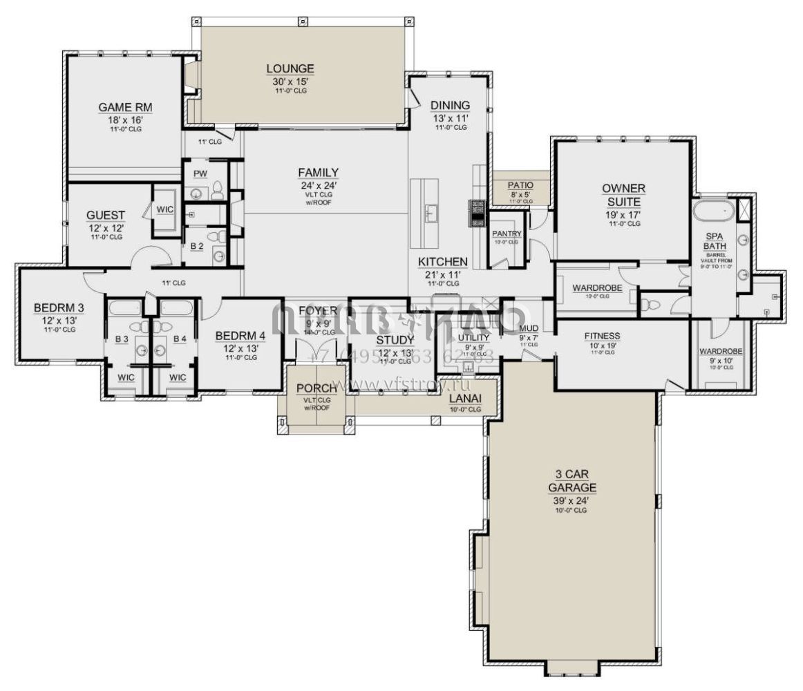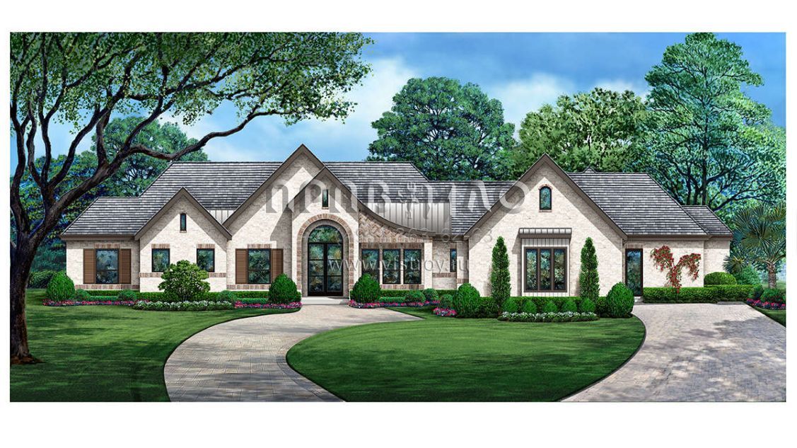Проект одноэтажного дома с гаражом на три и более машин в стиле Ранчо S5-356 (5445-00510)