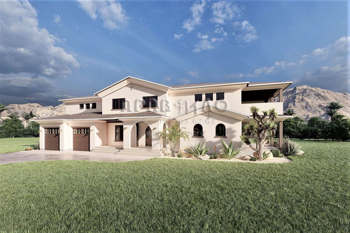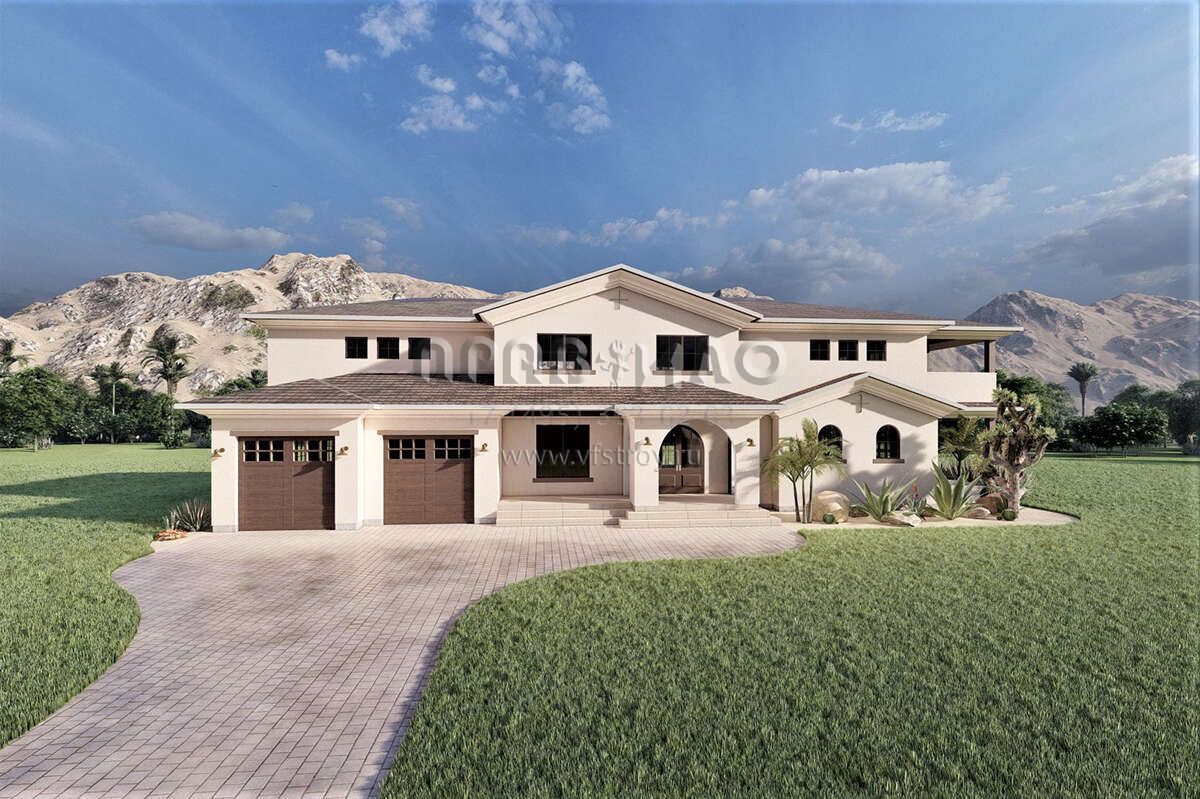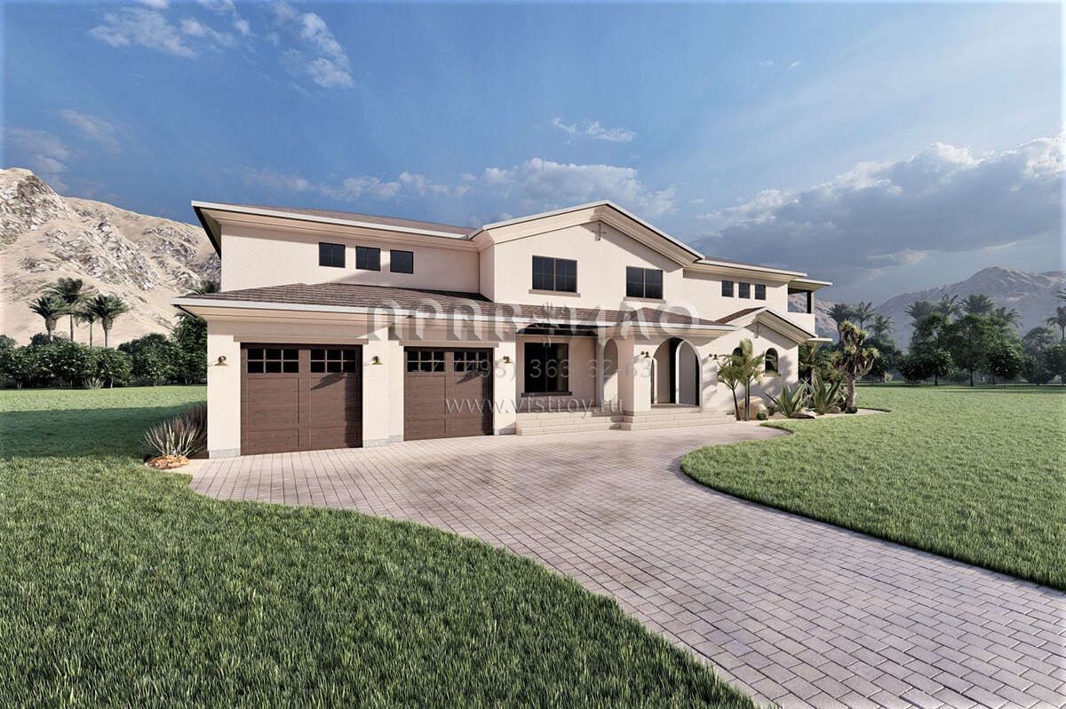 Проект двухэтажного дома с гаражом на две машины в прибрежном стиле S5-356 (6422-00088)