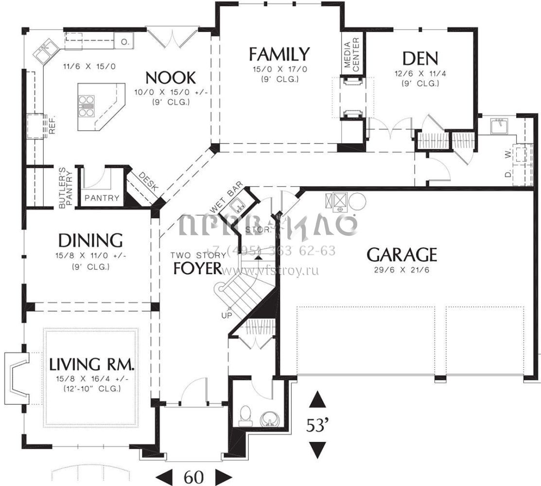 Проект двухэтажного дома с гаражом на три и более машин в английском стиле S5-357 (2559-00534)