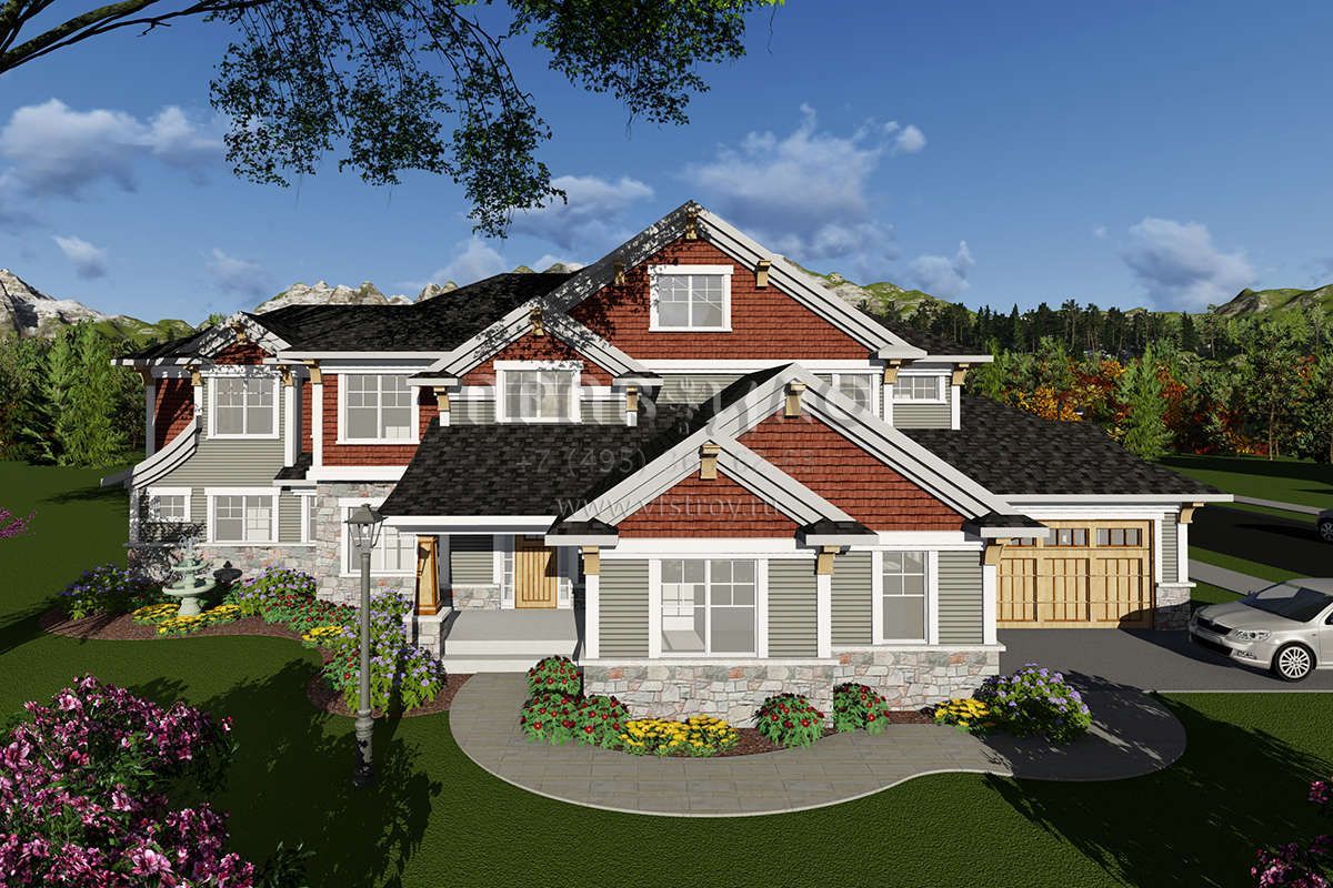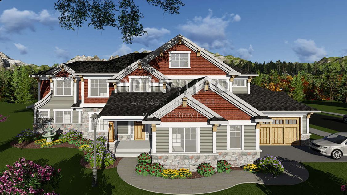 Проект двухэтажного дома с гаражом на три и более машин в американском стиле S5-358 (1020-00080)