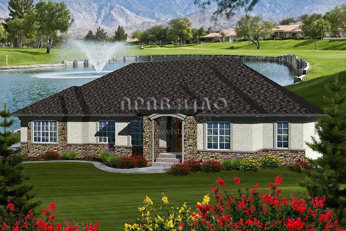 Проект одноэтажного дома с гаражом на три и более машин в английском стиле S5-358 (1020-00201)