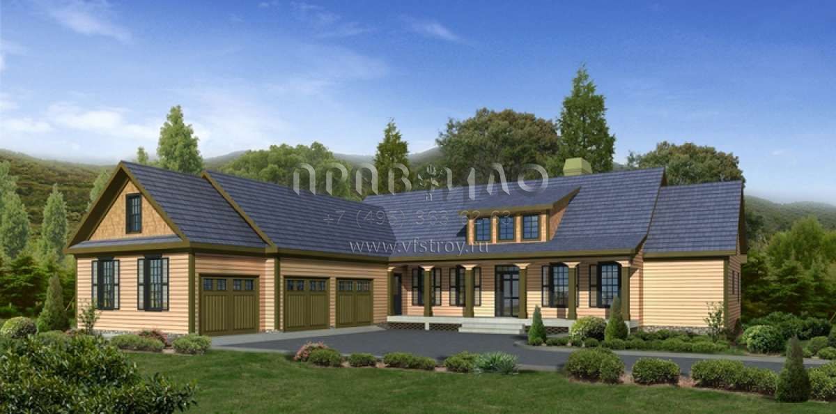 Проект одноэтажного дома с гаражом на три и более машин в стиле Шале S5-358 (957-00011)