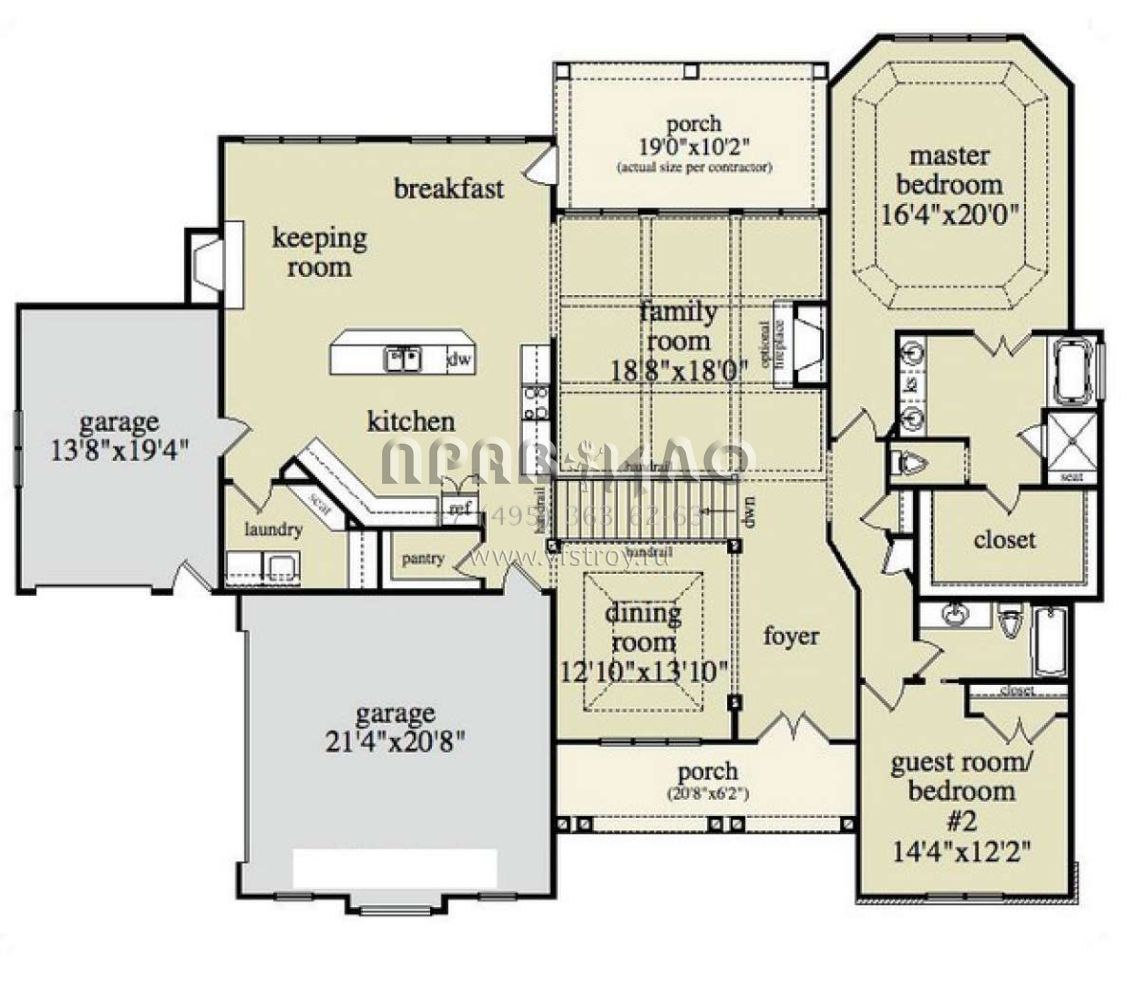 Проект одноэтажного дома на склоне с цокольным этажом и гаражом на три машины S5-358 (957-00015)