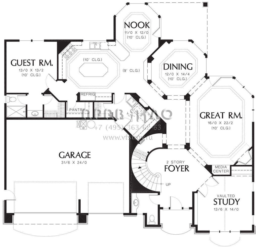 S5-359 (2559-00523) Это иностранный проект, для которого требуется адаптация под нормы, действующие в Российской Федерации. Вы видите проект дома в стиле Ранчо. В этом доме сочетаются черты сельской постройки и аскетичность лофта. Внутри жильцы смогут проводить время с максимальным комфортом. Обратим внимание, что сейчас на планировках все размеры представлены в футах. Для перевода в метры вам необходимо значение в футах умножить на 0,3048.